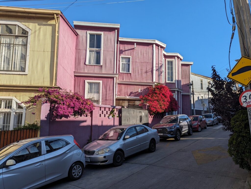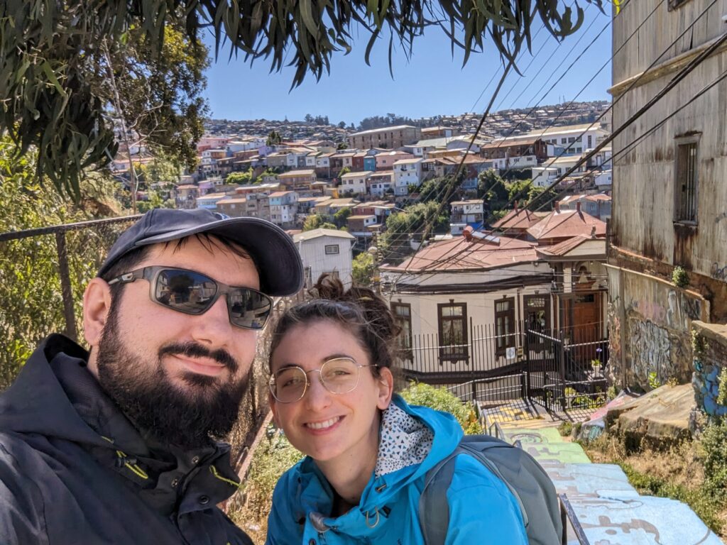 On part vers 14h pour 2h de voyage vers Valparaiso ! Les paysages ne sont pas les plus intéressants, et de toute façon on a dormi… Arrivé sur place, on prend un Uber sous conseil de notre hôte, et arrive enfin, après 48h de voyage, à destination. On est vraiment crevé, mais un tour sur le balcon nous fait dire que tout ça valait le coup!!
