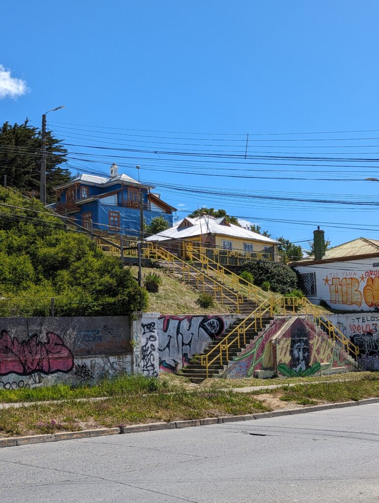 Changement d’ambiance par rapport à Valparaiso. La ville ressemble beaucoup plus aux États-Unis. Une ville en quadrillage faite de larges routes avec de larges trottoirs entourée de maisons individuelles avec petits jardins.