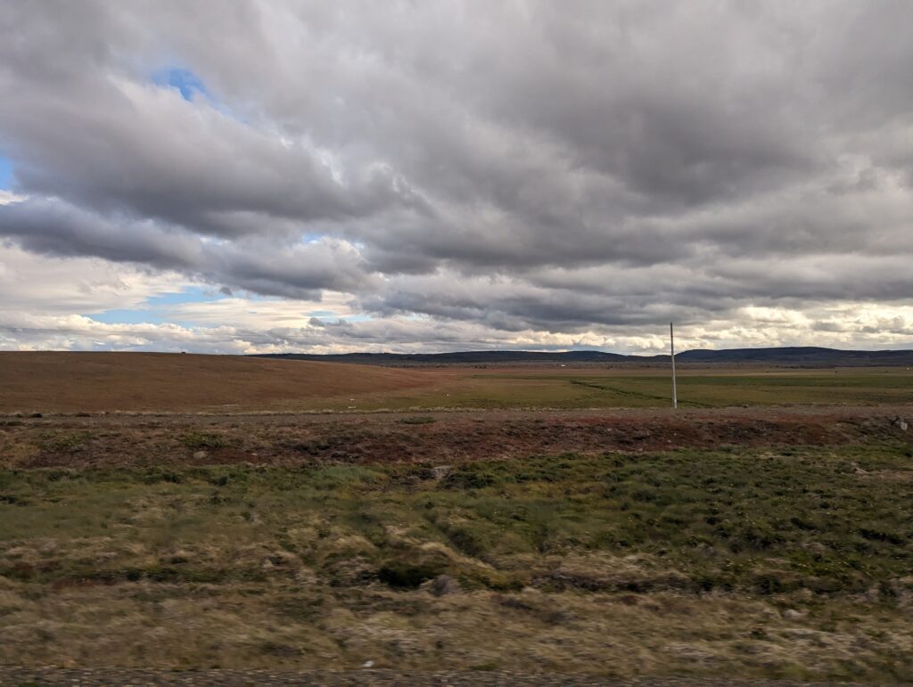 Le bus dure 3 h, 3h sur une route perdue au milieu de plaines sauvages. Un paysage, vide, sombre, venteux, sans un arbre de plus de 3 m, et pourtant… extrêmement joyeux et coloré ! Les photos ne leur rendent pas honneur, mais l’herbe et les arbustes nous donnent un mélange de vert sombre, clair, parfois presque jaune, parsemés de rouge vif ou bordeaux. On est tellement scotché par ce défilé de couleur au milieu de ce paysage isolé et austère qu’on n’en dors pas de tout le trajet (pourtant on avait des sièges aussi très confortables) !