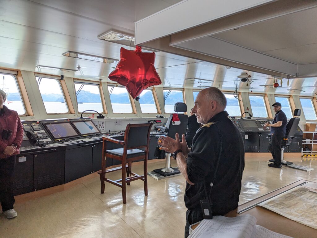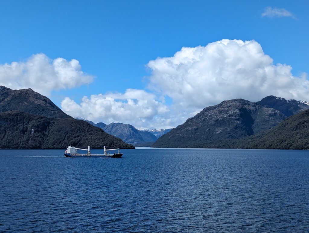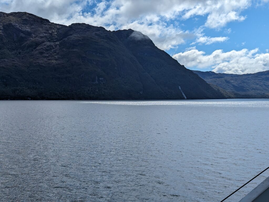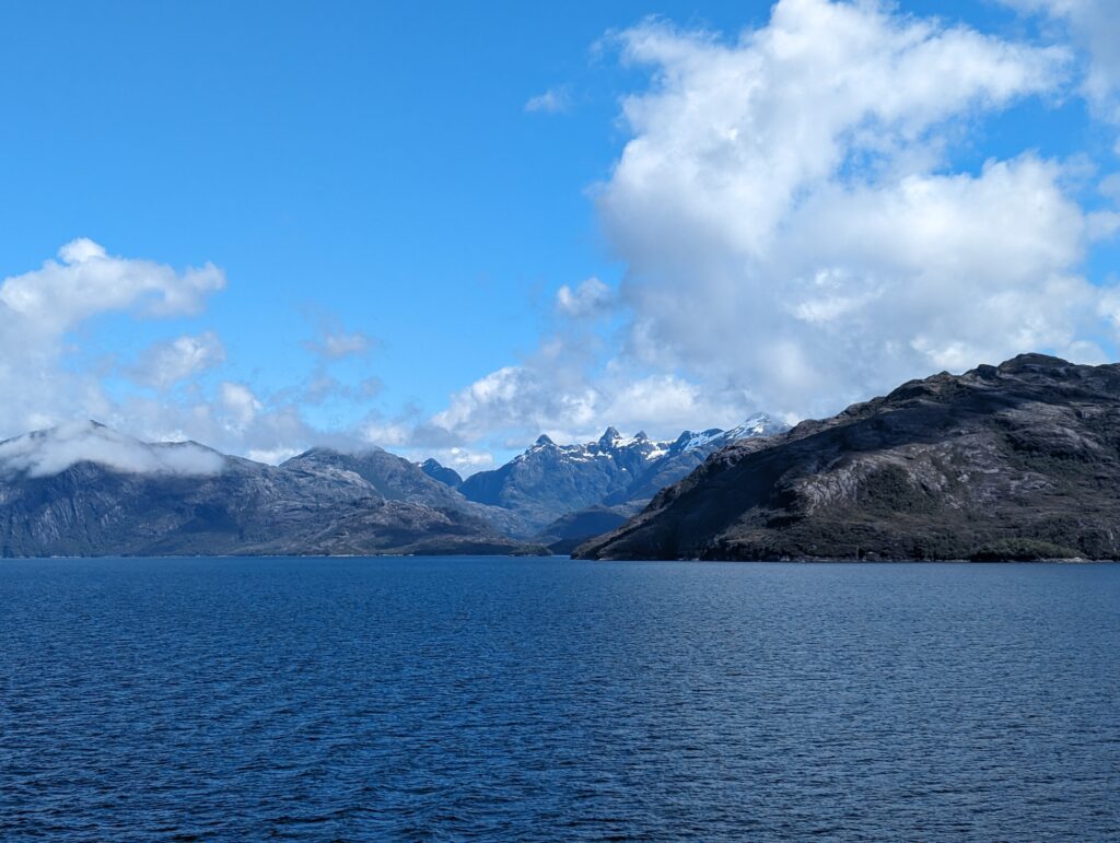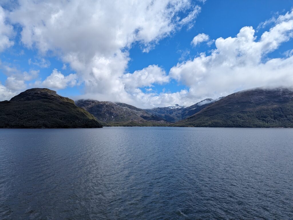 On sort de la cabine, et on découvre une plateforme accessible qui donne une vue à 180° sur l’arrière du bateau. C’est devenu notre coin préféré, et j’y passe les 3 prochaines heures à regarder les fjords défiler. Surtout que le temps s’est largement amélioré !