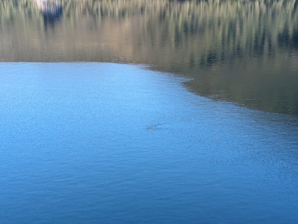 On croise des oiseaux, des poissons, des crustacés, et même des méduses. On se dit qu’il ne manque que le transat, quand soudain on voit une petite chose qui brille sur l’eau, et qui disparaît. Pour revenir 10 secondes plus tard. Soudain, une autre petite chose qui brille. Je prends mes jumelles, trop tard elle a disparu à nouveau…. Mais une autre arrive, cette fois-ci je la voie, c’est une loutre de mer ou une otarie. Et il y en a plein ! Certaines nagent en sautant hors de l’eau, d’autres barbotent en se laissant porter par le courant. On reste les regarder, ou alors c’est elles qui nous regardent.