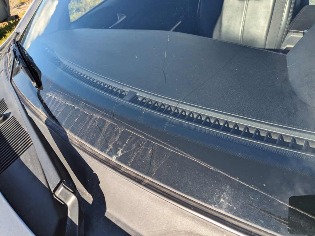 On avance un peu, dans le rétroviseur, la voiture derrière est coincée. À présent, on entend un bruit de pièce détachée qui provient de sous la voiture… On regarde vite fait, par peur de rester sur cette route et de prendre un caillou d’une voiture qui nous dépasserait, on trouve rien. Je me rappelle un commentaire sur Blue rent a Car disant que la voiture faisait un bruit bizarre, mais que finalement c’était un caillou, je prie pour que ce soit ça.