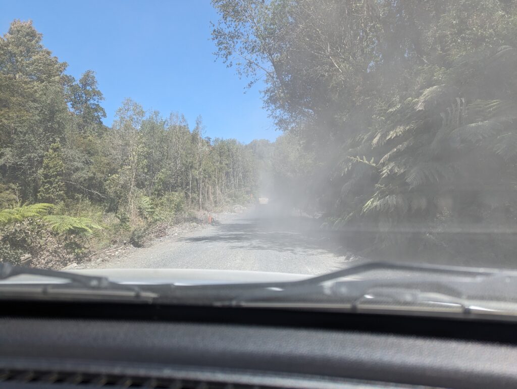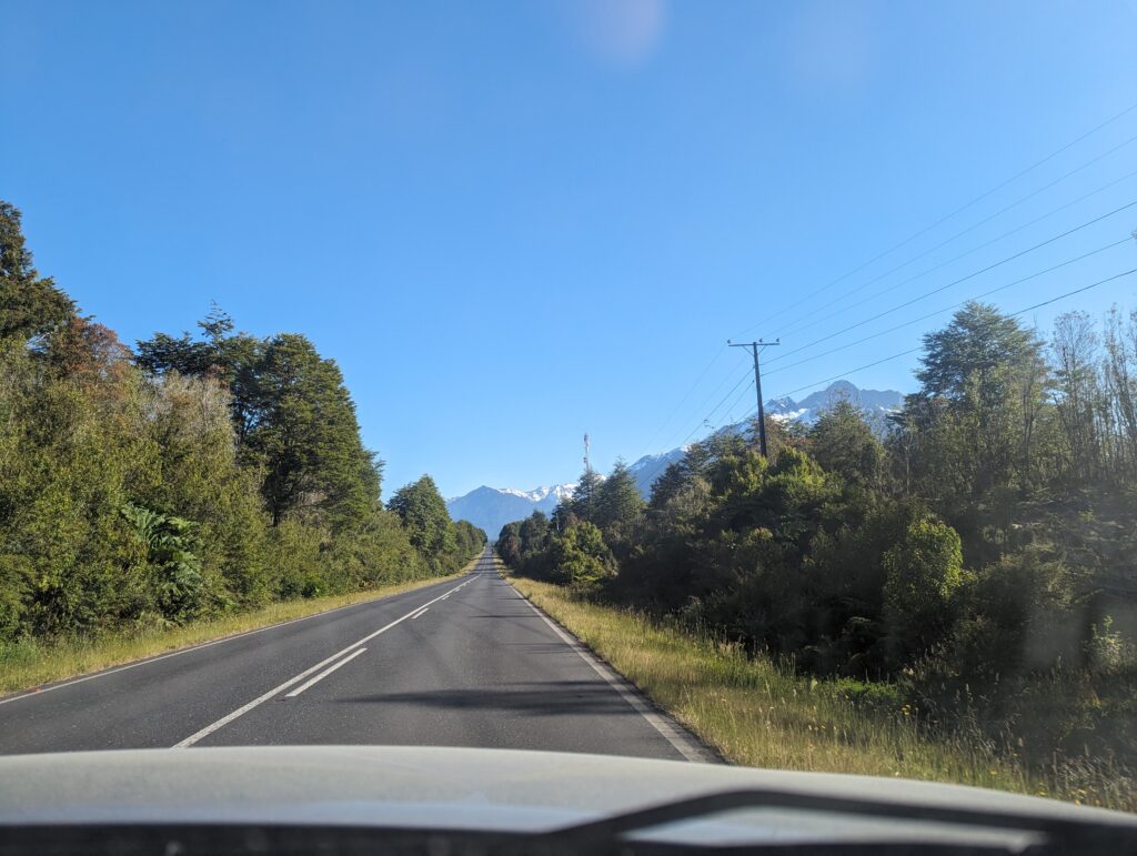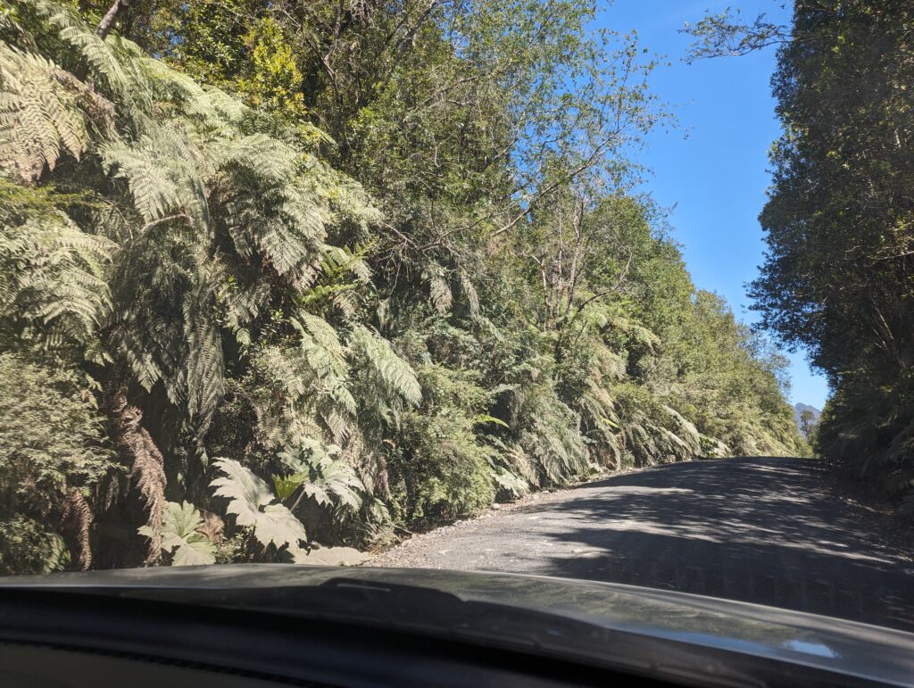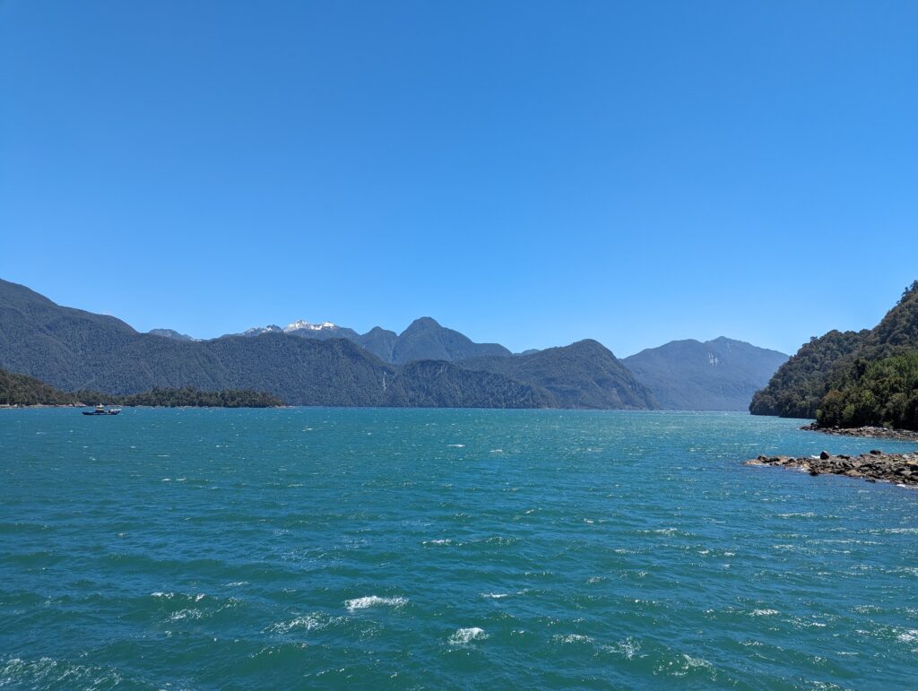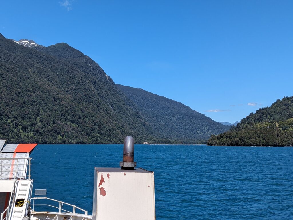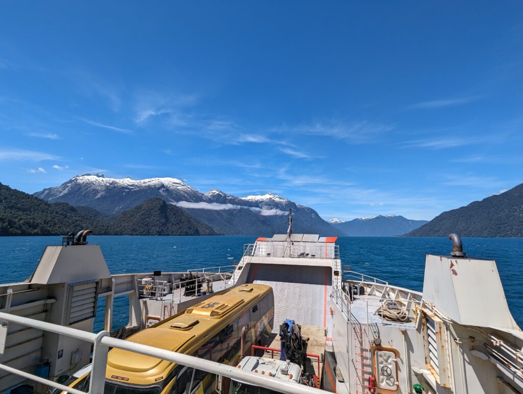 Le deuxième ferry pas grand chose à dire non plus. On débarque, Elena prend le volant. On sort, et là on tombe sur du ripio, alors qu’on avait lu que toute la route jusqu’à Coyhaique (à 500km d’ici) était goudronnée…