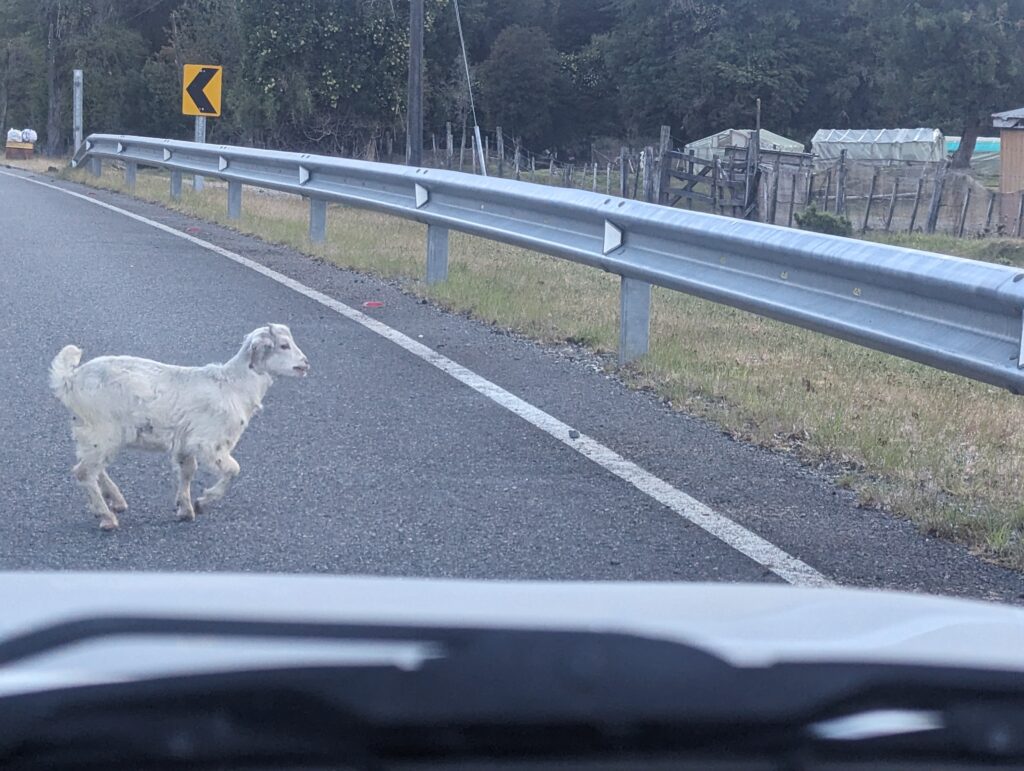 On croise aussi plein d’animaux domestiques sur le bord de la route, sans clôtures comme des chiens, chevaux, vaches ou chèvres.
