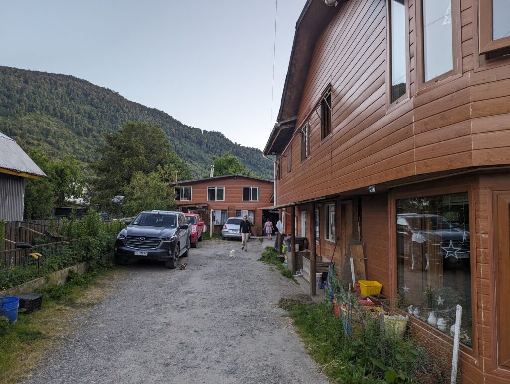 On s’install dans l’hostal, il est sympa. L’hôte nous rassure en disant qu’il y a deux réparateurs de pneus (gomeria) dans la ville, on pensait qu’il n’y aurait rien avant Coyhaique à 230km !