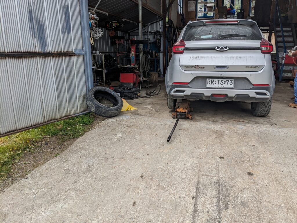 On démarre la journée par changer le pneu. On va à la gomeria, et il le fait rapidement pour 6€.