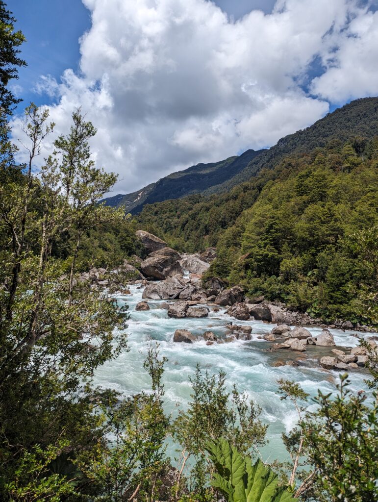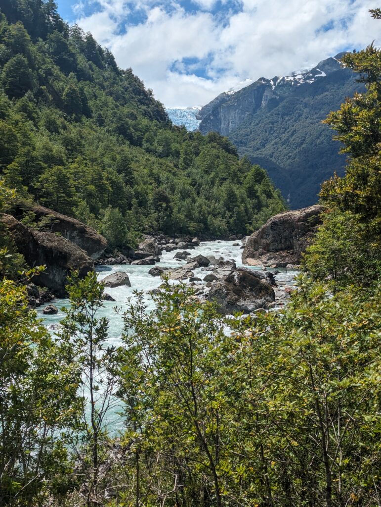 Pour arriver au lac d’où provient la rivière, avec vue sur les cascades d’où provient lac, et sur le glacier d’où proviennent les cascades !
