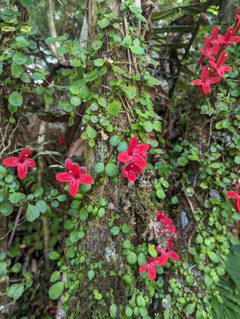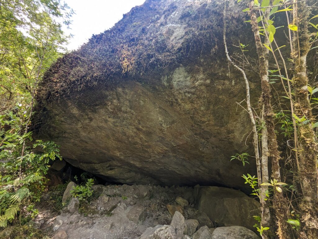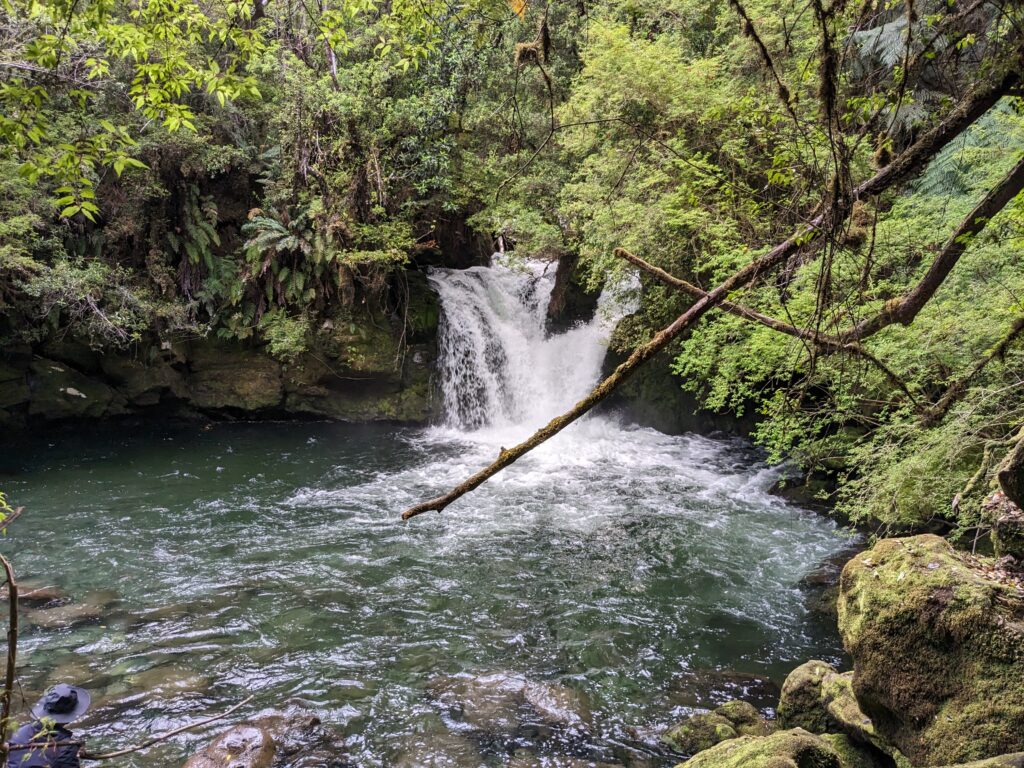 Finalement la vue est belle mais ne vaut pas les crampes. Et on retourne à la cascade que l’on avait prévu de visiter au départ. Mais pour la voir, on doit poser le pied-à-terre et faire une mini-rando. Et là, l’ambiance est incroyable. On se sentirait presque à la recherche d’un trésor dans une île perdues depuis plusieurs décennies….