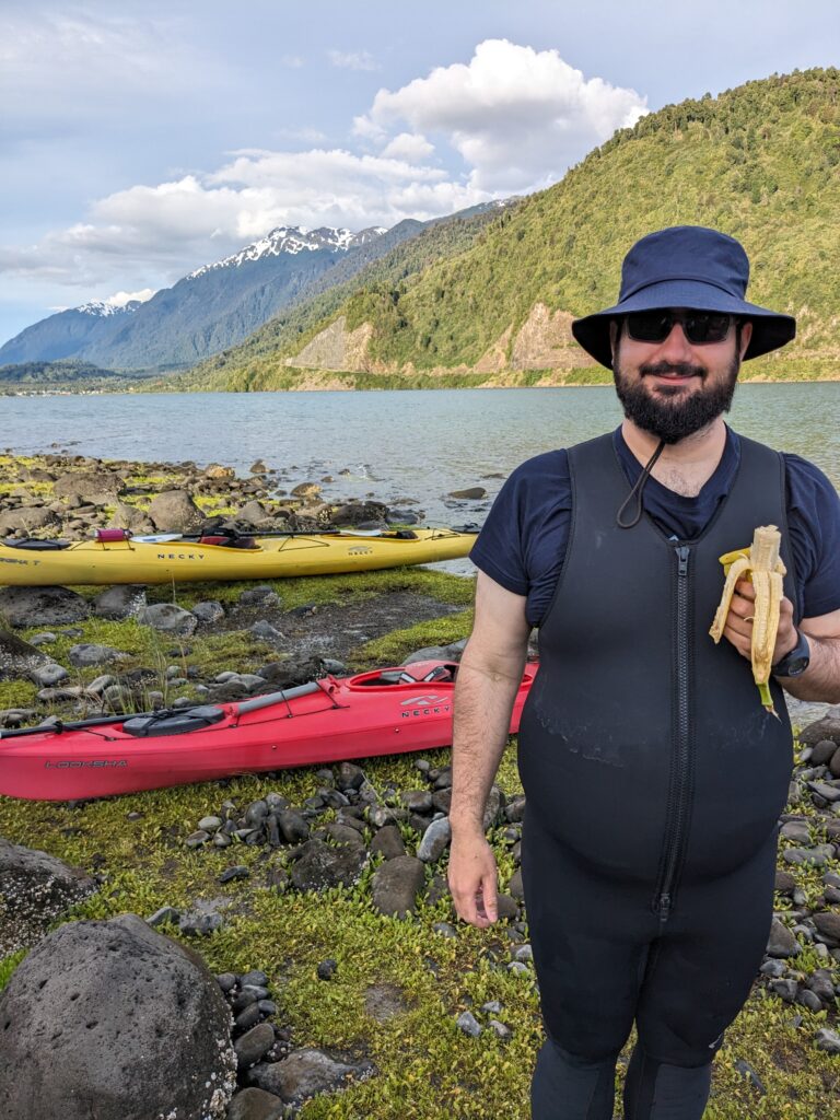 On rentre tout juste à temps pour manger avant de partir faire du kayak. Pendant que l’on mange, on discute avec une dame dans la cuisine qui préparait les repas. On apprend qu’elle est en fait cuisinière, et que les 15 personnes qu’elle nourrit sont en fait les employés de la ferme de saumon. Ces fameuses fermes qui empiètent sur le territoire des peuples autochtones… aie !