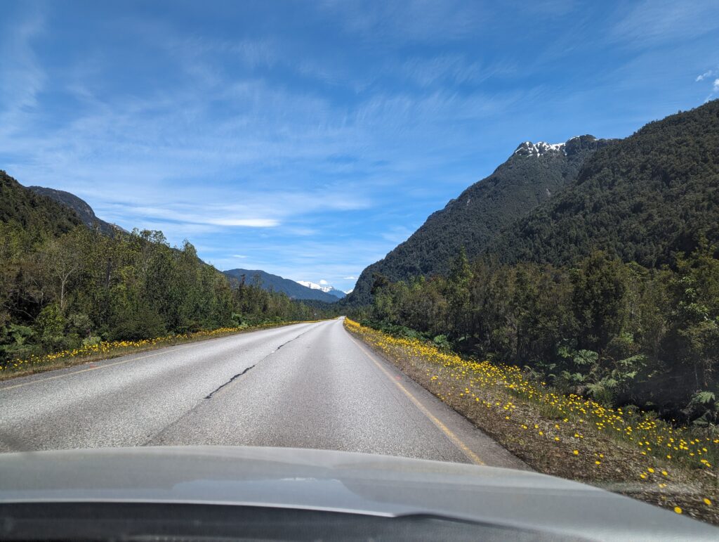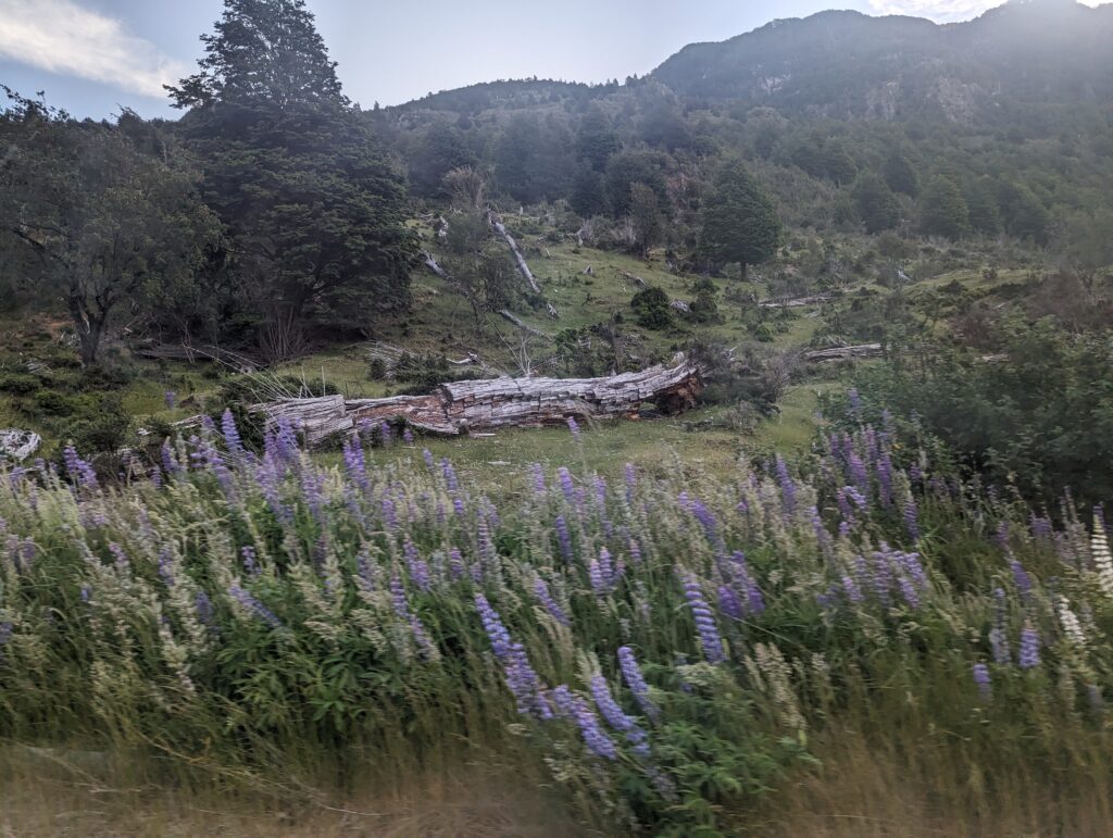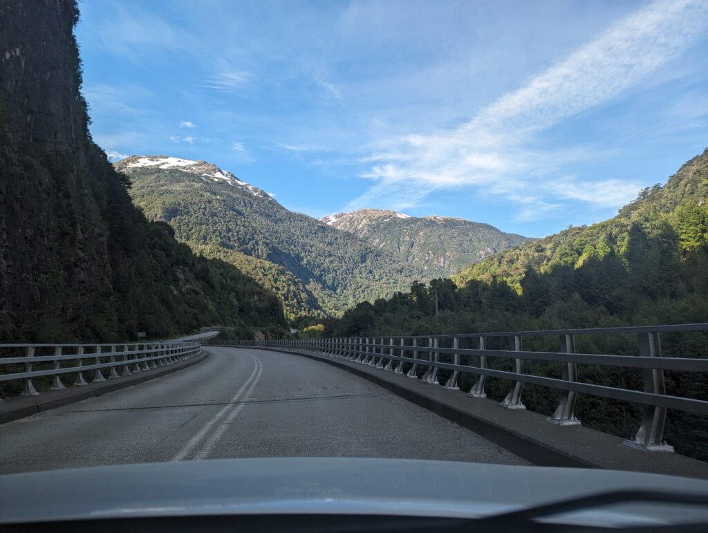 Au bout d’un moment, on quitte la Ruta 7 pour prendre la route goudronnée (pas fous !) qui relie les deux plus grandes villes du coin : Coyhaique et Puerto Aysen. Et pour la première fois on commence à voir beaucoup de monde sur la route.
