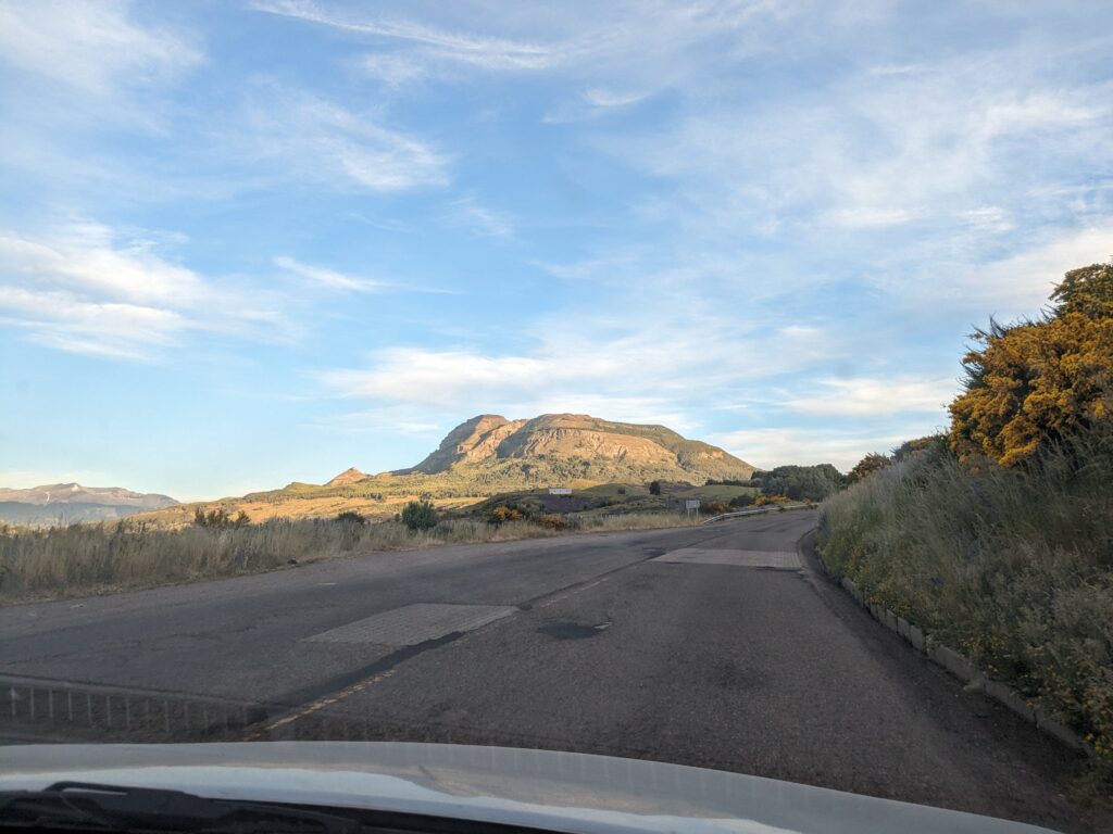 Heureusement, la route est assez tranquille. Les paysages changent un peu : les montagnes s’aplatissent et les arbres deviennent de plus en plus ronds. On longe une rivière qui semble faire des crues fréquentes au vu de la végétation basse qui l’entoure.