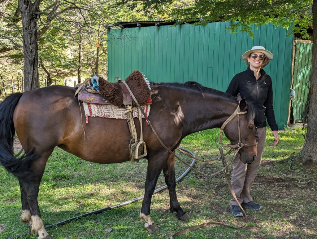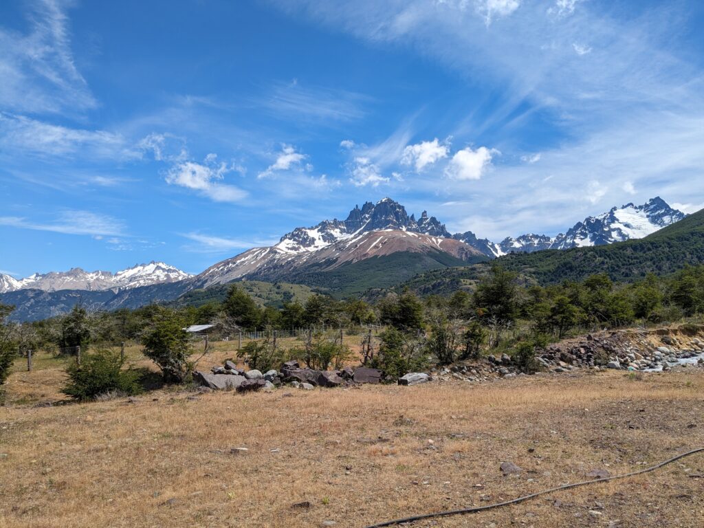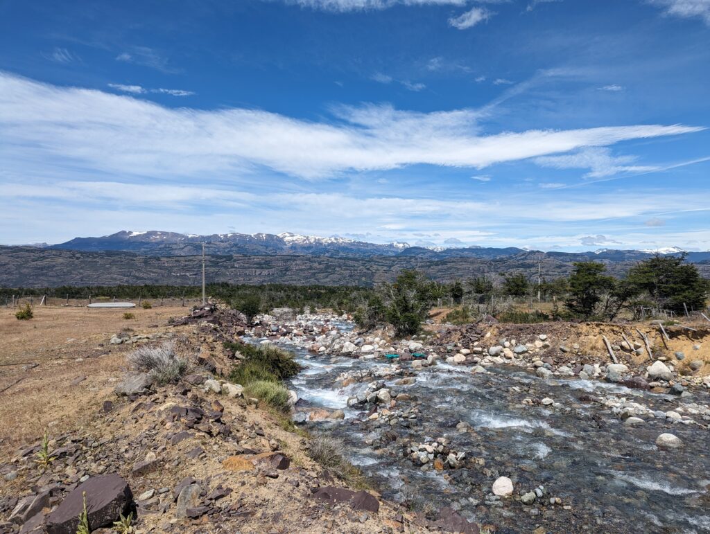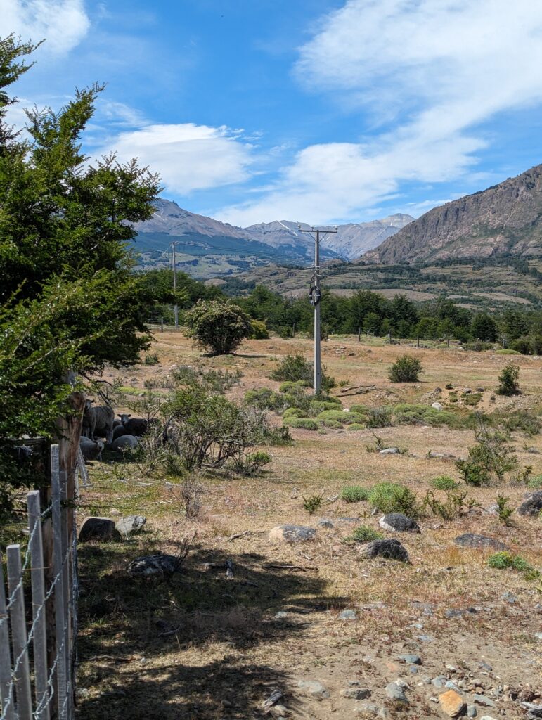 Arrivé au bout du sentier, on monte sur une colline rocheuse, et on se retrouve devant un paysage grandiose. Le cerro castillo sur la droite. Le rio Ibanez qui serpente devant nous. Entourés (au loin) de chèvres et de mouton, et pas une habitation à l’horizon. C’est bête à dire, mais sur notre cheval, on se sentait un peu comme un cowboy qui a l’entièreté du paysage devant lui à découvrir.