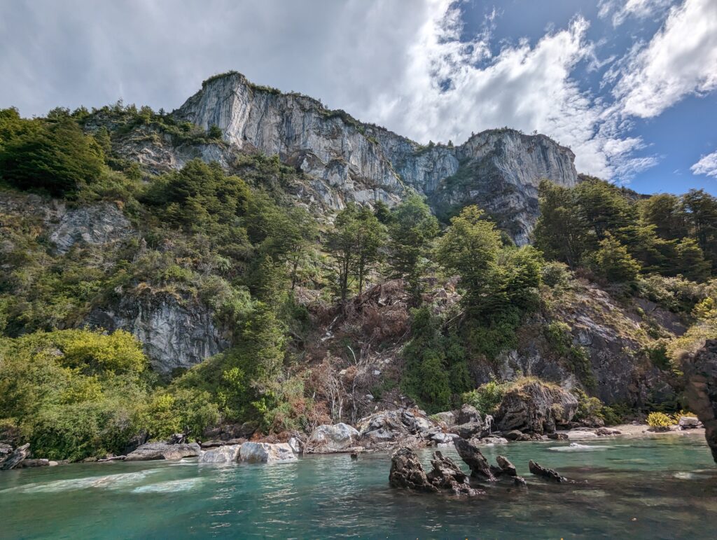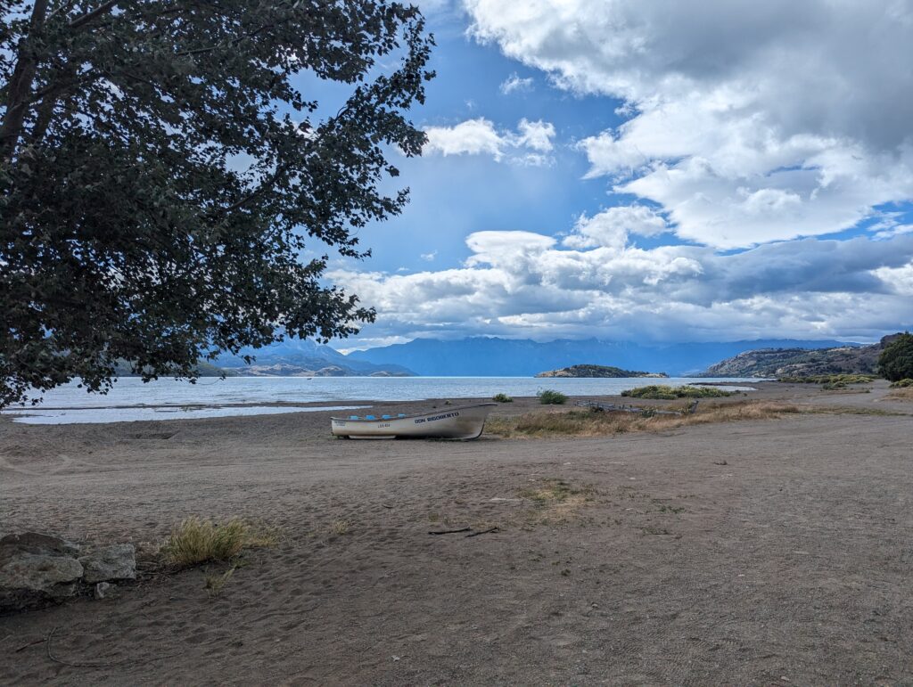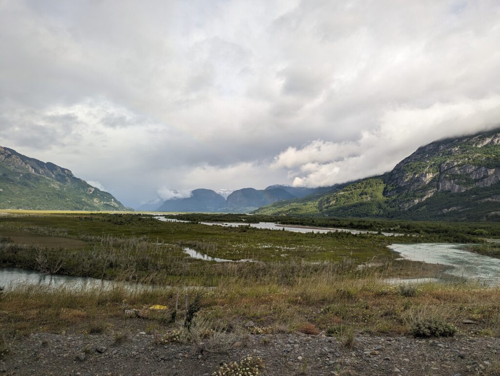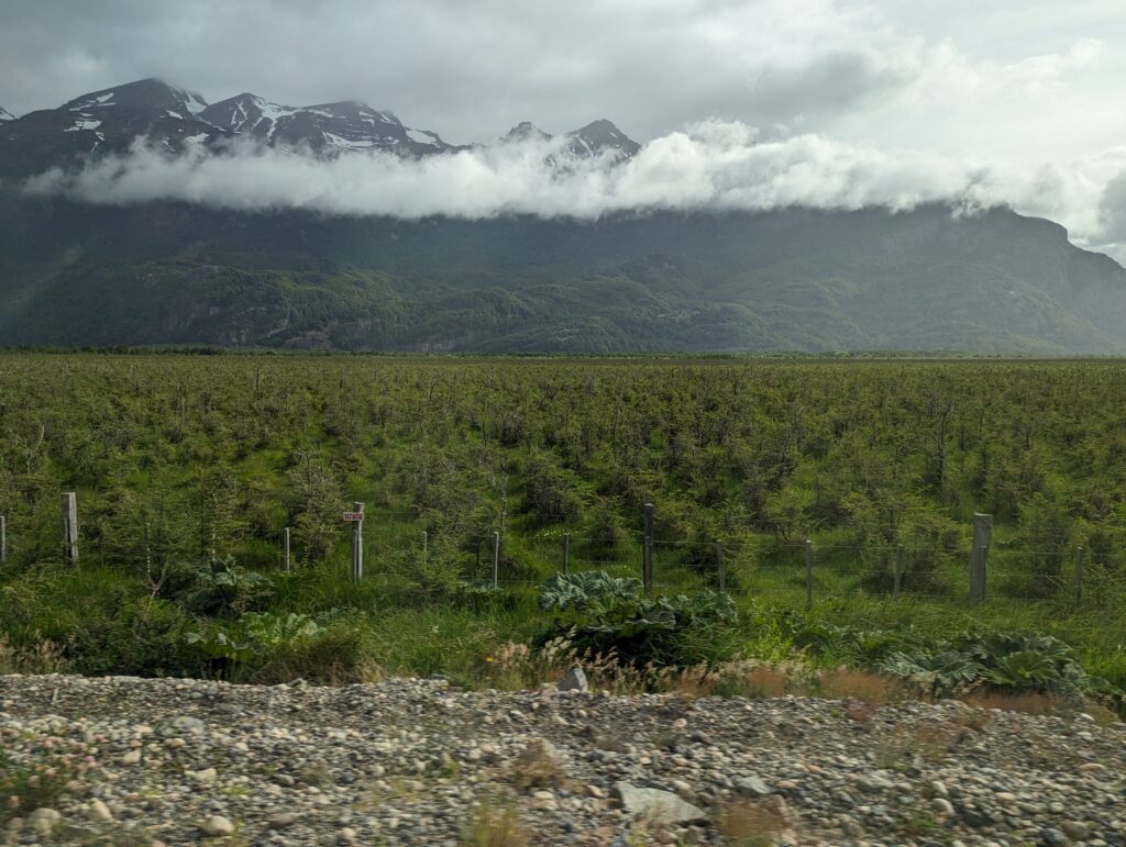 Bon, sinon à part l’état de la route, la première partie du trajet le long du Rio Ibanez est vraiment belle. Un volcan a explosé il y a plusieurs années inondant le secteur et tuant la végétation, qui reprend peu à peu ses droits. On se retrouve donc avec des forêts d’arbres très jeunes c’est assez étrange. Le reste de la route est assez quelconque, le temps n’aidant pas….