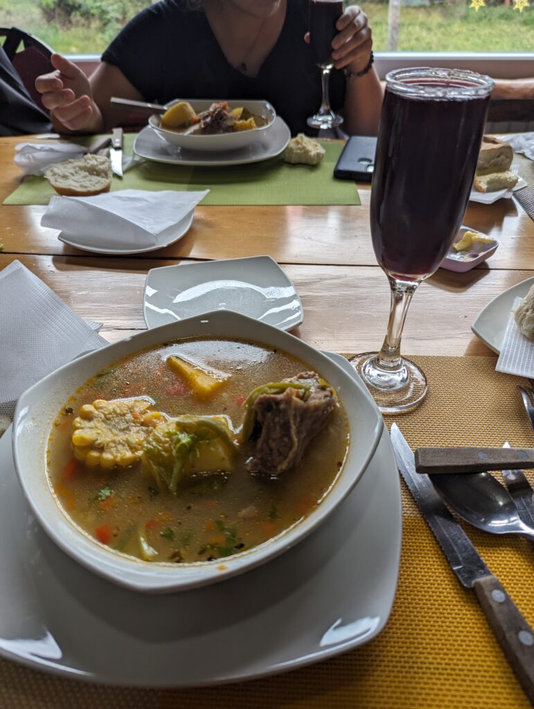 On arrive au restaurant, on mange un petit repas typique (retour du Cazuela de vacuno) et je goute du pisco avec des calafate. Puis petit tour dans Puerto Rio Tranquilo avec son squelette de baleine, avant de reprendre la route jusque chez nous (avec la même pause de 20 min, à 3 min de notre cabana !)