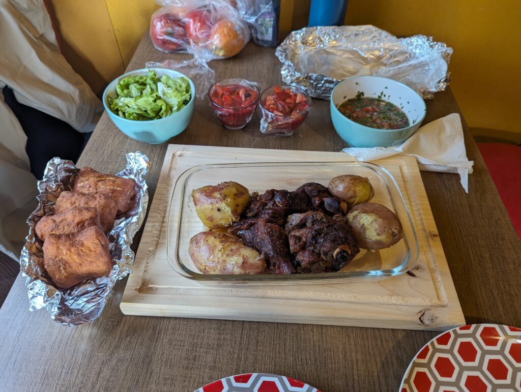 Retour à la maison, gouter sur la terrasse avec Loulou. Puis le soir, on mange le repas préparé par la mère de la famille hôte : Agneau avec patates, salade chilienne (et salade normale), sopaipillas et salade de fruits rouge en dessert. C’était vraiment incroyable!!
