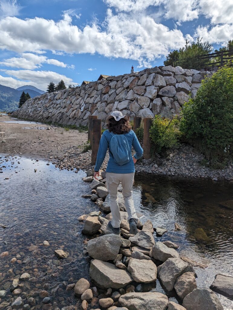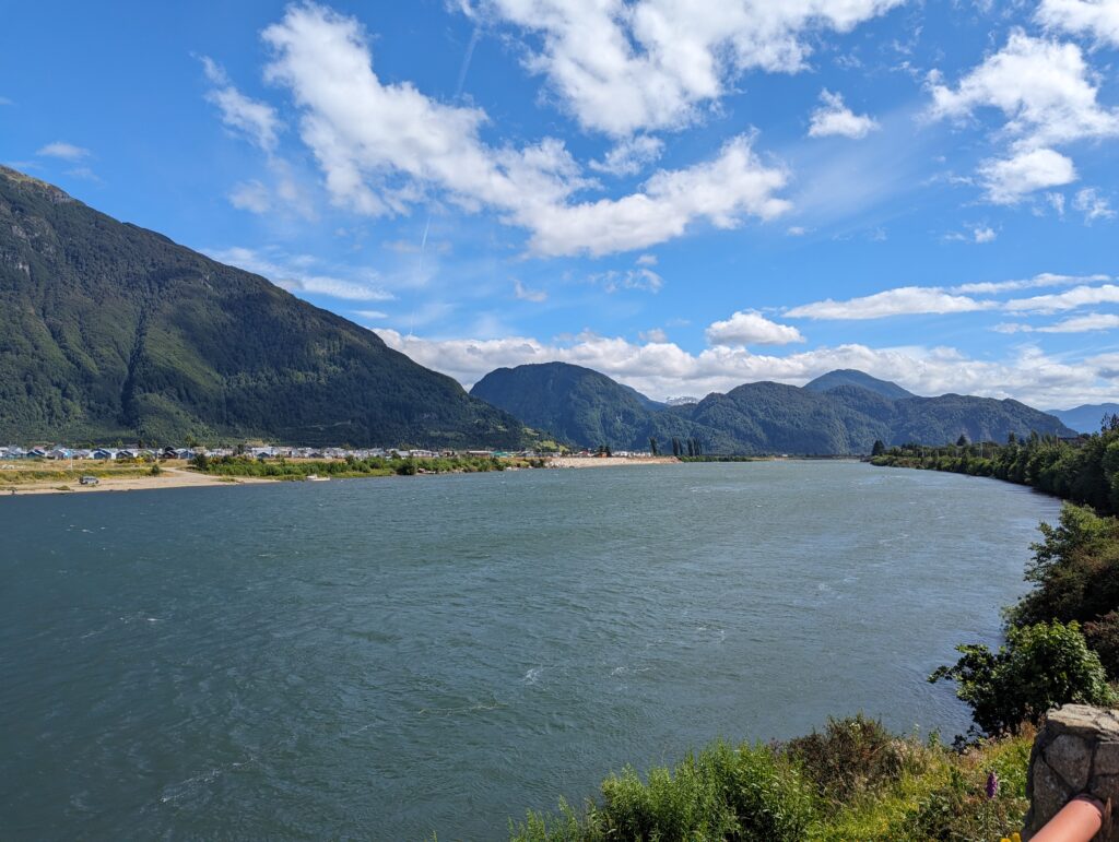Finalement on arrive sur… rien… La péninsule est constituée de maisons pas terrible et de rues ne donnant pas sur la rivière, et dont certaines ne nous ont vraiment pas inspirées… On tourne un peu dans l’espoir de trouver le port, mais non. À ce jour je ne sais toujours pas où il est… Au bout d’un long moment, on arrive enfin à une vue dégagée du bord de ville, maigre lot de consolation…