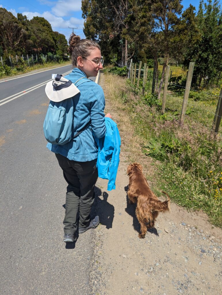 Bon, si on ne veut pas s’endormir, il faut continuer. On reprend la route et arrive 30 min plus tard à notre cabana. Le lieu est vraiment très sympa, on rentre par un petit chemin au milieu des buissons en fleur, puis on arrive à l’endroit indiqué où nous sommes accueillis… par deux chiens ! Nous faisons la connaissance de Coca et Pela pendant quelques minutes avant que notre hôte n’arrive. Nous verrons le 3ème chien, Negra, que le lendemain. (D’ailleurs, c’est Coca qui sera la Loulou du séjour, c’est-à-dire celle qui réclamera le plus de caresses !)