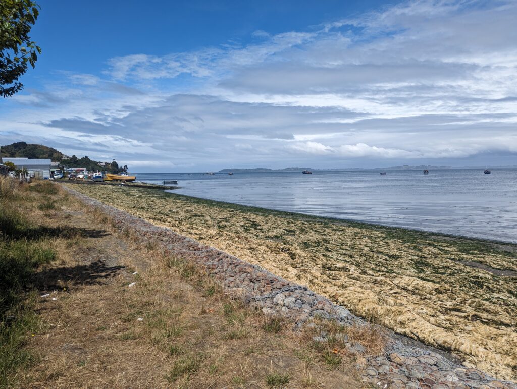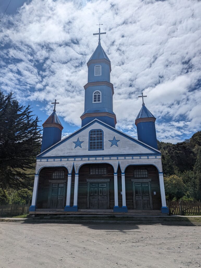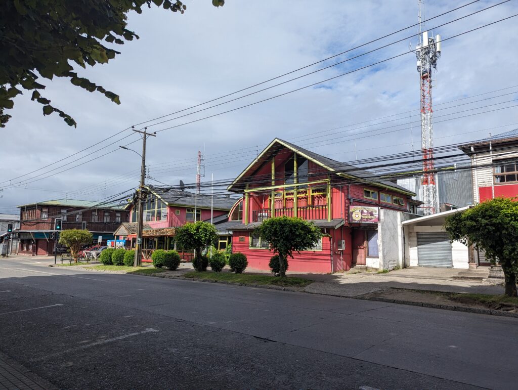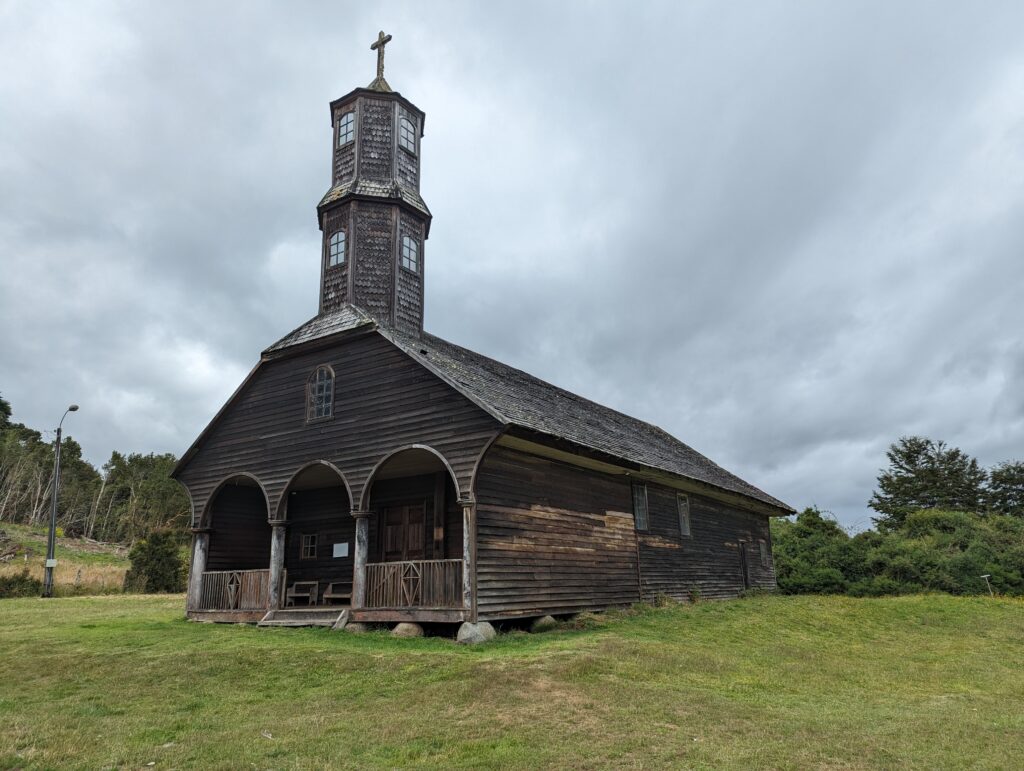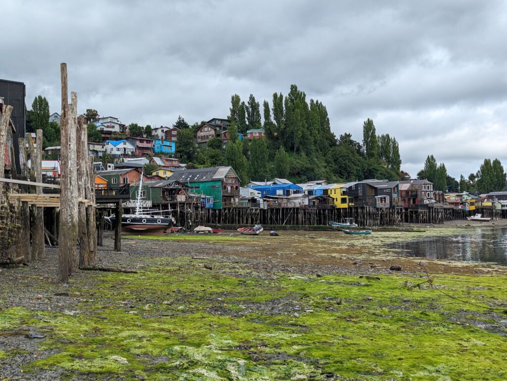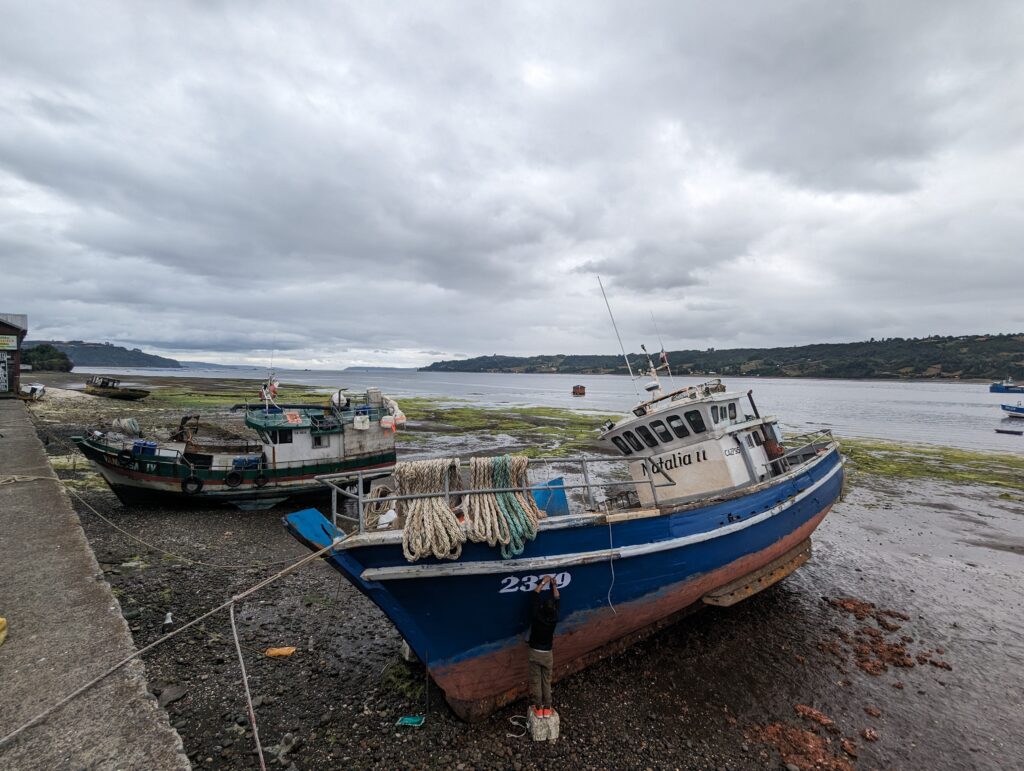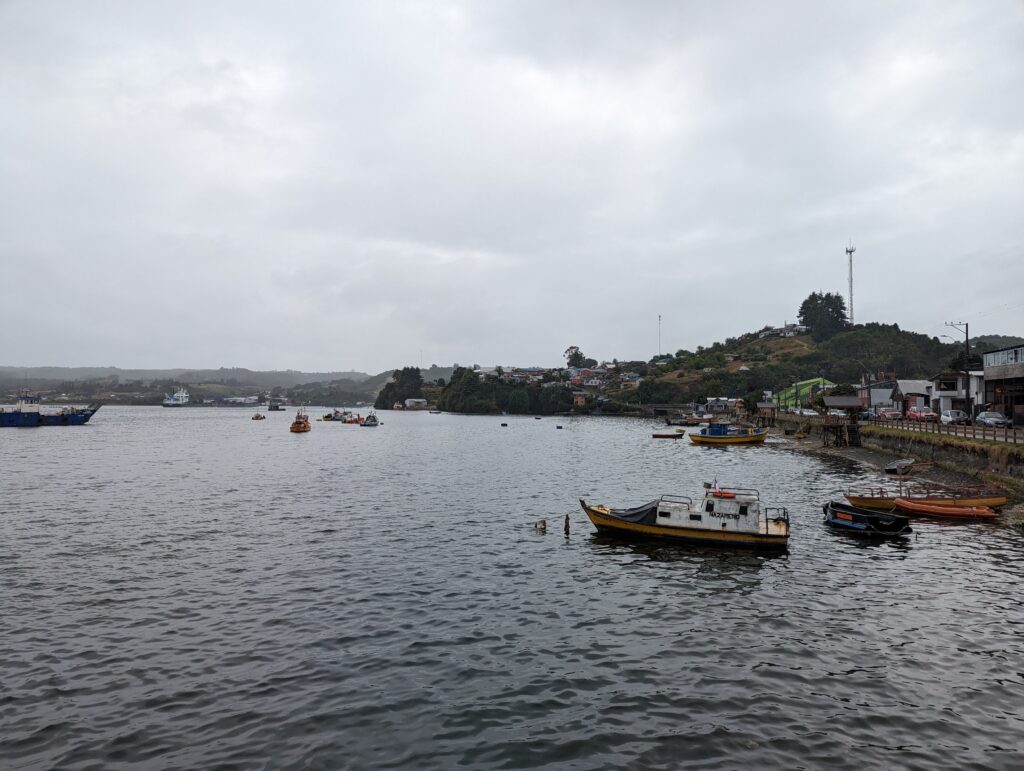 On arrive enfin à Quemchi après avoir pris la pluie. Le routard dit que la ville n’a d’intérêt qu’a marée basse, c’est parfait car on est… marée haute… excellent timing… Bon on sait prévoir la marée, juste ça ne coïncidait pas avec les horaires pour manger à la Cocineria de Dalcahue qu’on a prioritisé ! Et en effet pas grand intérêt !