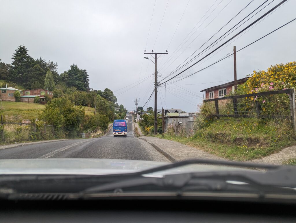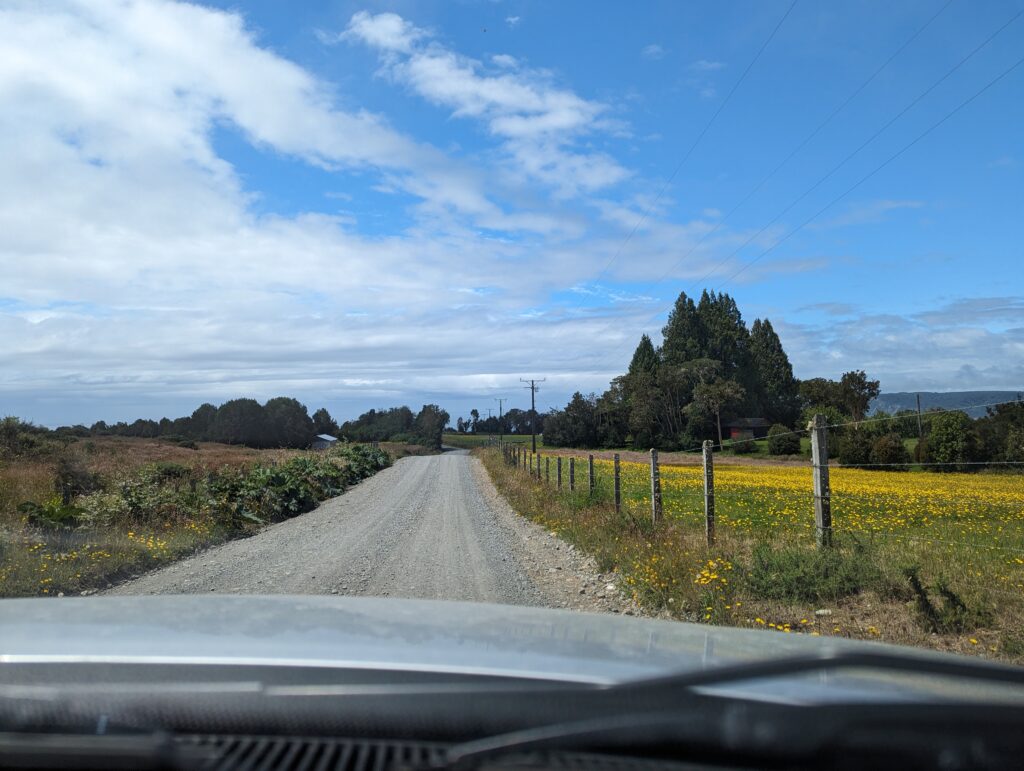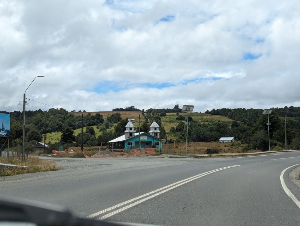 On part à présent pour Quemchi, toujours plus au nord-est. La route est assez jolie mais on longe pas vraiment la côte comme j’aurais aimé. On décide donc de prolonger la route pour s’en approcher, quitte à risquer le ripio. Direction donc Tenaún.