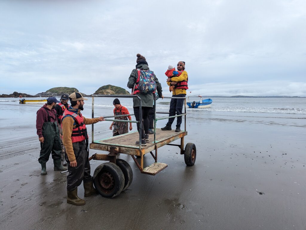 On attend notre tour, on regarde autour, on voit des embarcations mais pas de passerelle pour embarquer. C’est parce qu’on embarque… en chariot !