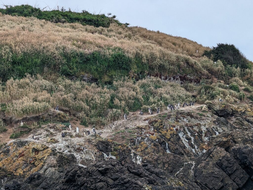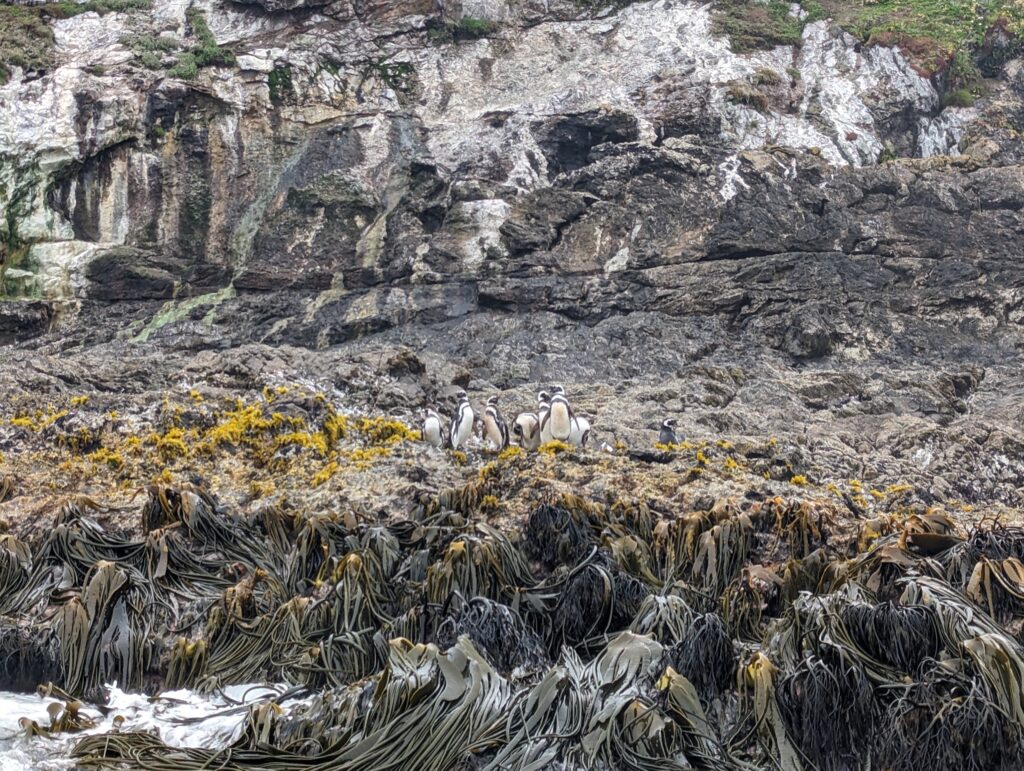 Une fois chargés dans le bateau, le tour démarre. Après 5min de navigation on arrive prêt de l’île et… des pingoins à 20m ! Le tour dure en tout 30min et est très sympa. On y voit beaucoup de pingoins, mais aussi plein d’autres espèces d’oiseaux. Le guide donne pas mal d’explications très intéressantes et on aurait aimé mieux comprendre l’espagnol car on a pas tout saisi.