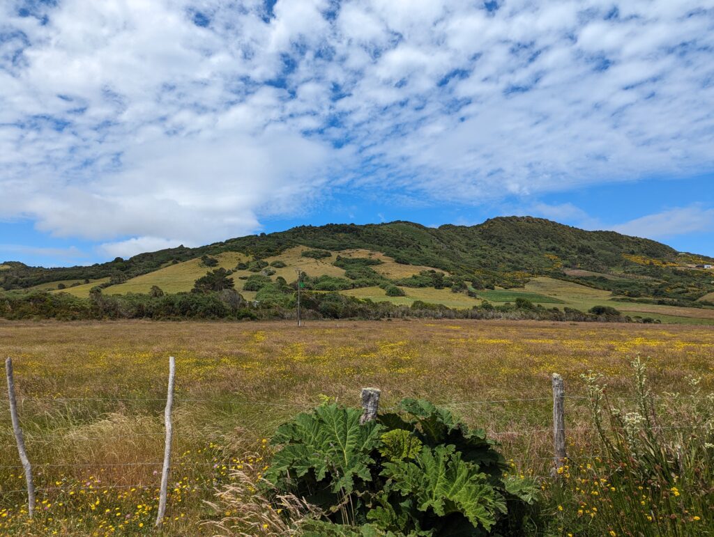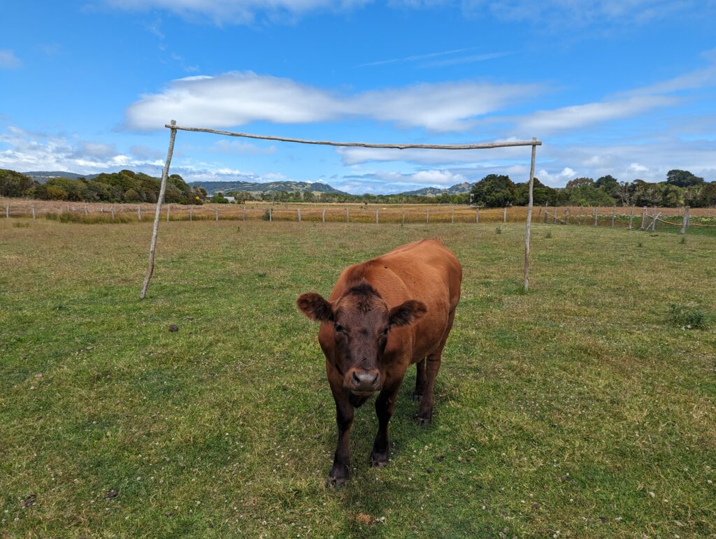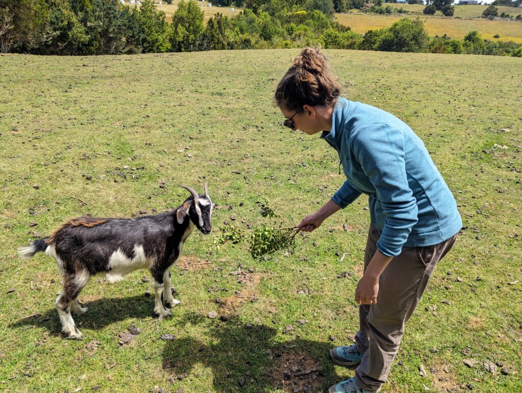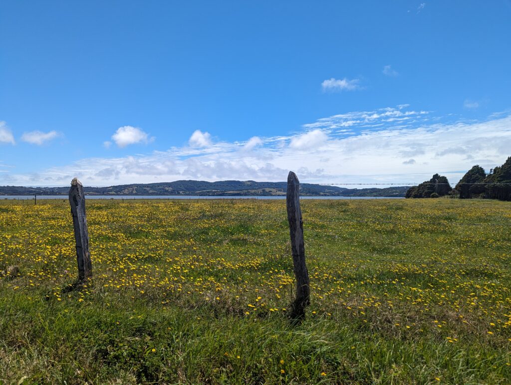 Une fois notre dose d’animaux mignons prise, on repart pour la péninsule Lacuy. Mais avant on lui demande ce que font les gens de l’île comme métier. Elle nous dit pêcheur, éleveur ou agriculteur principalement. « Ah vous cultivez des légumes ? » « Oui des patates ! »