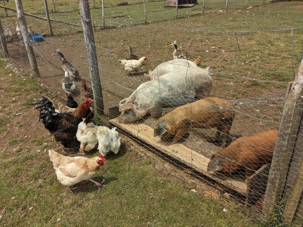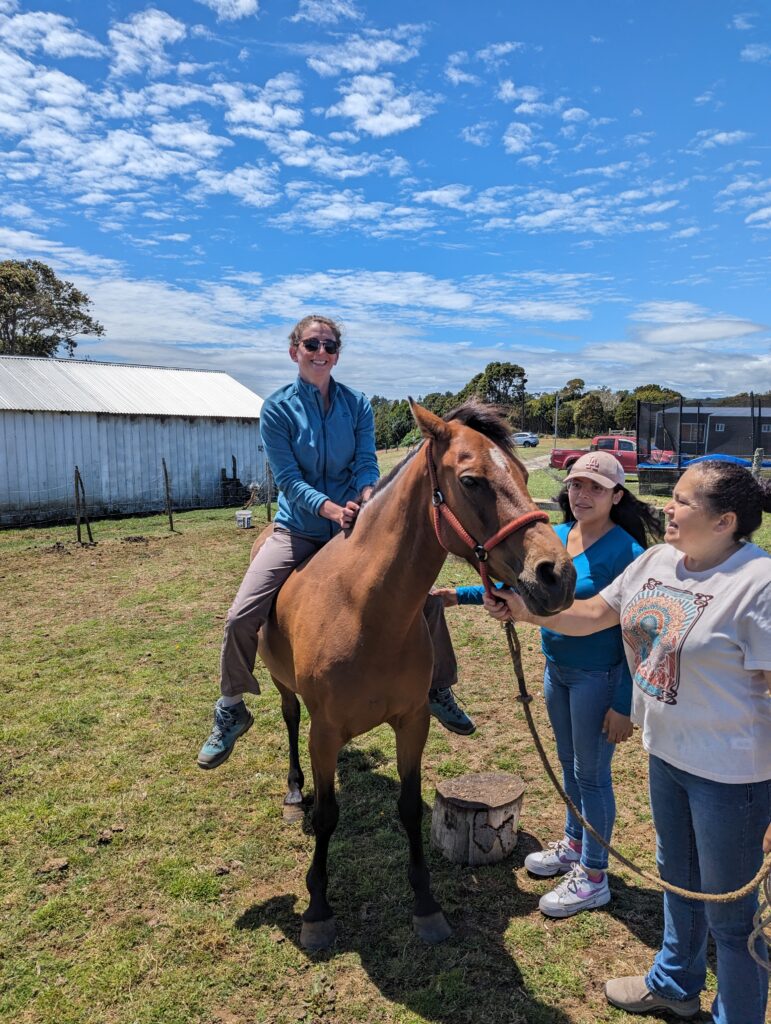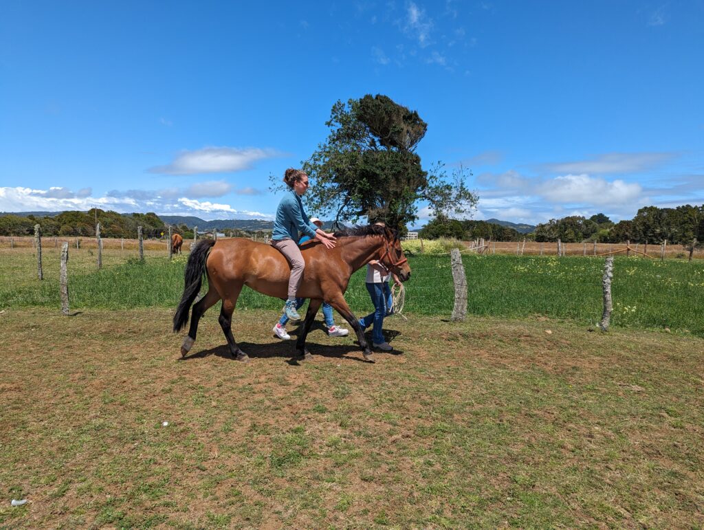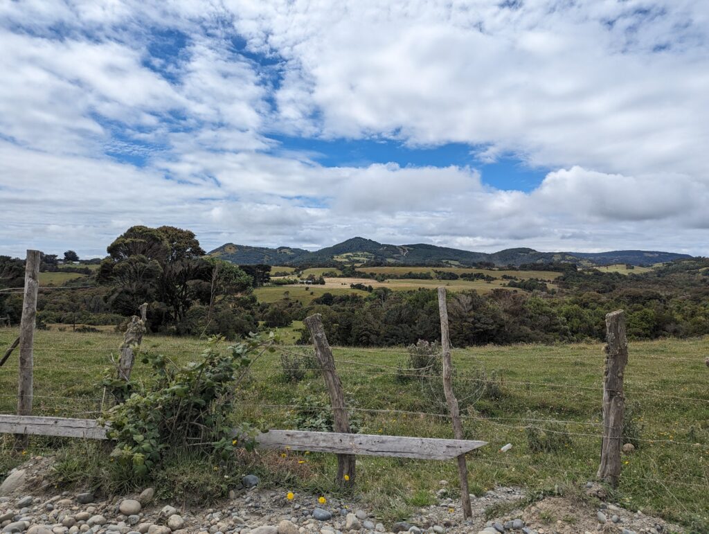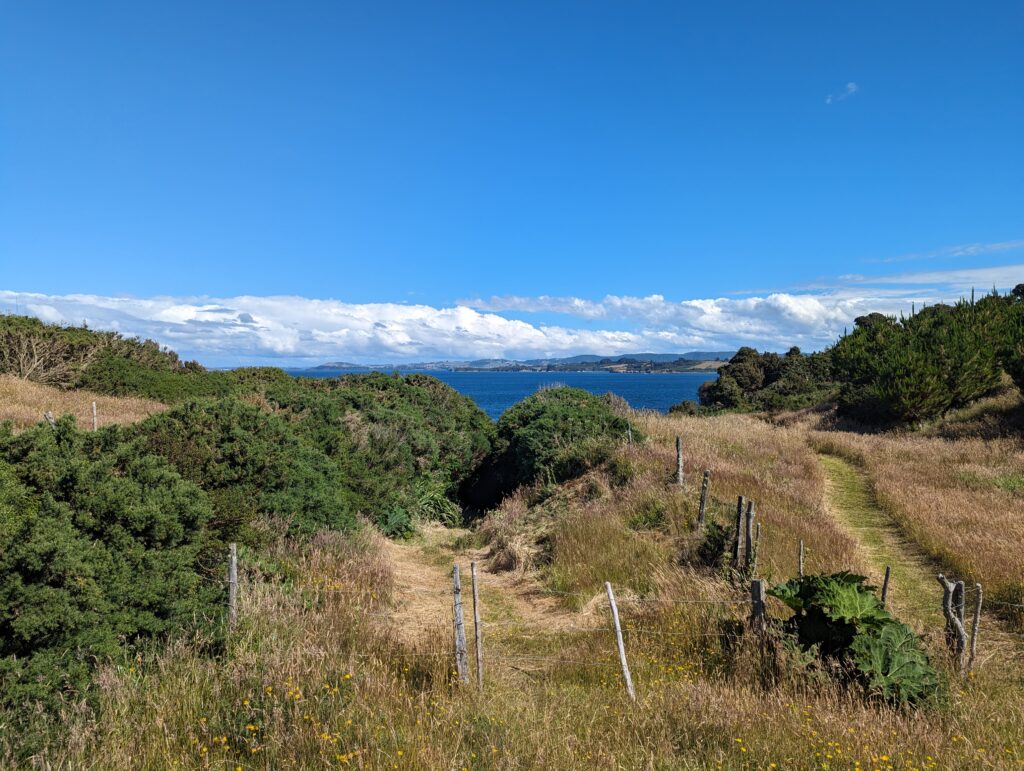 Une fois notre dose d’animaux mignons prise, on repart pour la péninsule Lacuy. Mais avant on lui demande ce que font les gens de l’île comme métier. Elle nous dit pêcheur, éleveur ou agriculteur principalement. « Ah vous cultivez des légumes ? » « Oui des patates ! »
