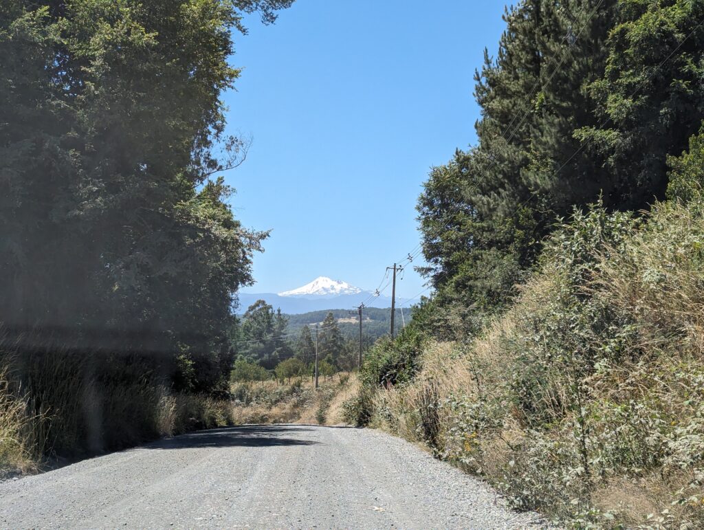 On quitte donc Melipeuco après avoir mangé, direction Pucón ! Le début du chemin est assez tranquille, on reprend le goudron neuf de l’aller, puis on coupe pour ne pas faire le grand tour. Après 20 min de route, sans crier gare, d’un coup d’un seul, le goudron disparaît au profit du ripio… naaaaaaaaaan… Il reste encore 30 km à faire. Pas l’envie. La décision est plutôt rapide, on va revenir en arrière et faire le tour !