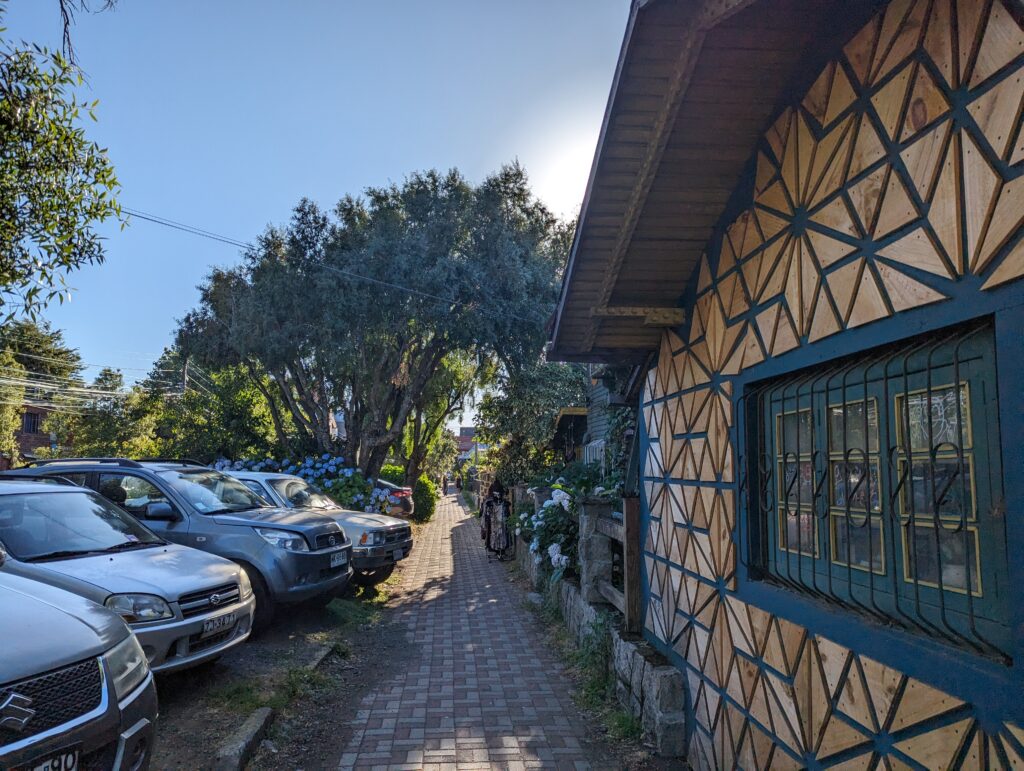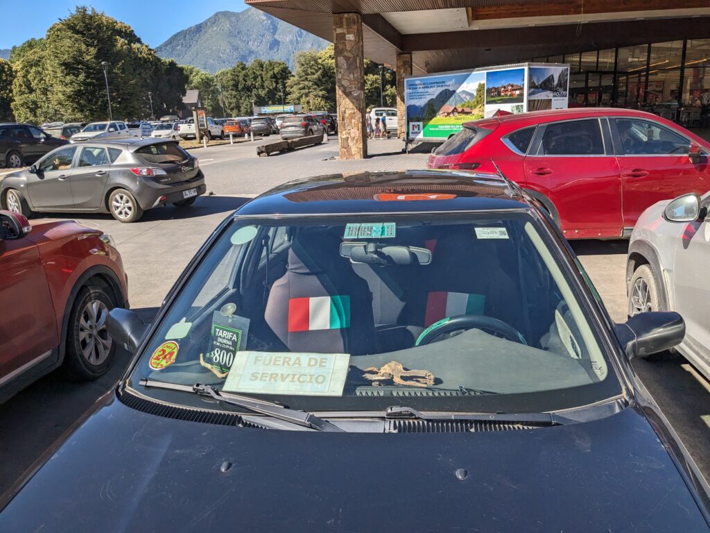 Heureusement Elena a trouvé une astuce. Il y a un Unimarc (un supermarché) juste à l’entrée du centre, et le parking y est…. Gratuit ! Nous utilisons donc notre hack en fin d’après midi pour aller visiter la ville.