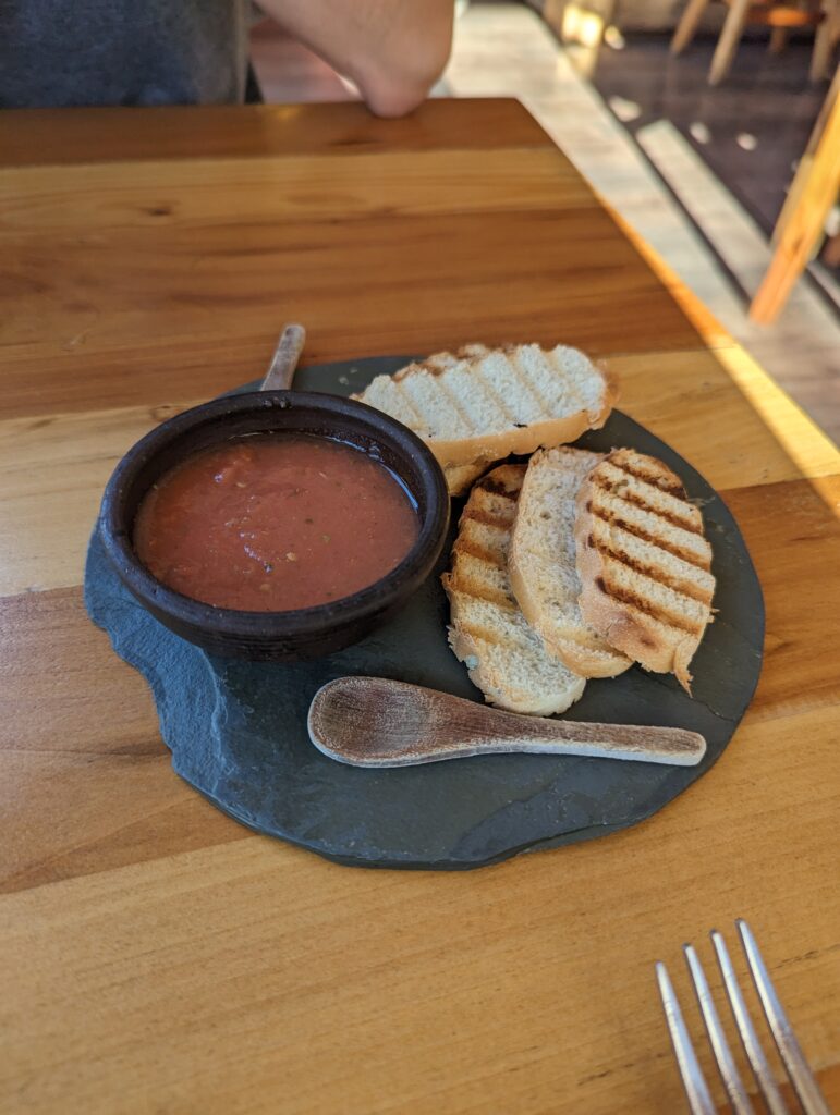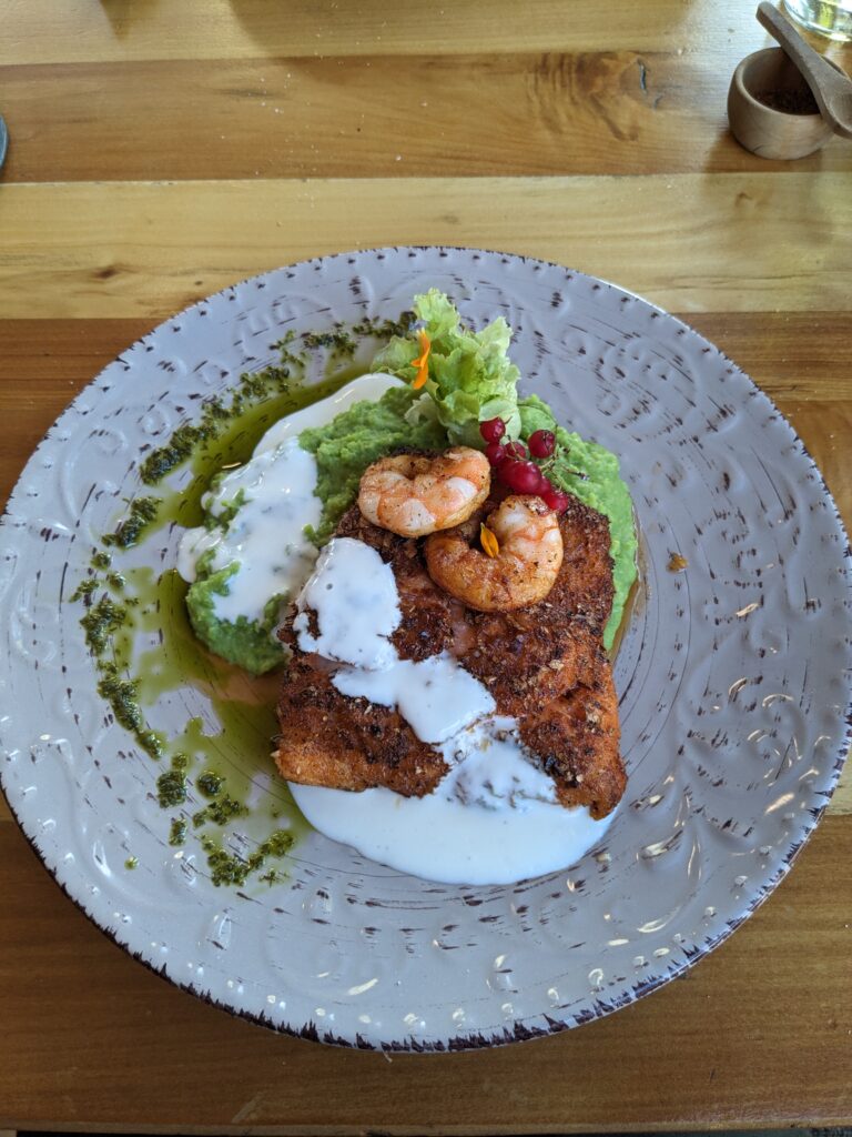 La route principale est globalement un défilé d’agence de tourisme, et la vie disparaît dès que l’on va dans les rues un peu parallèles. Le tout reste néanmoins assez joli. Après avoir acheté notre pain dans une boulangerie française conseillée par le routard, on décide de se faire plaisir en allant dans un restau pas trop mal ! Au menu :