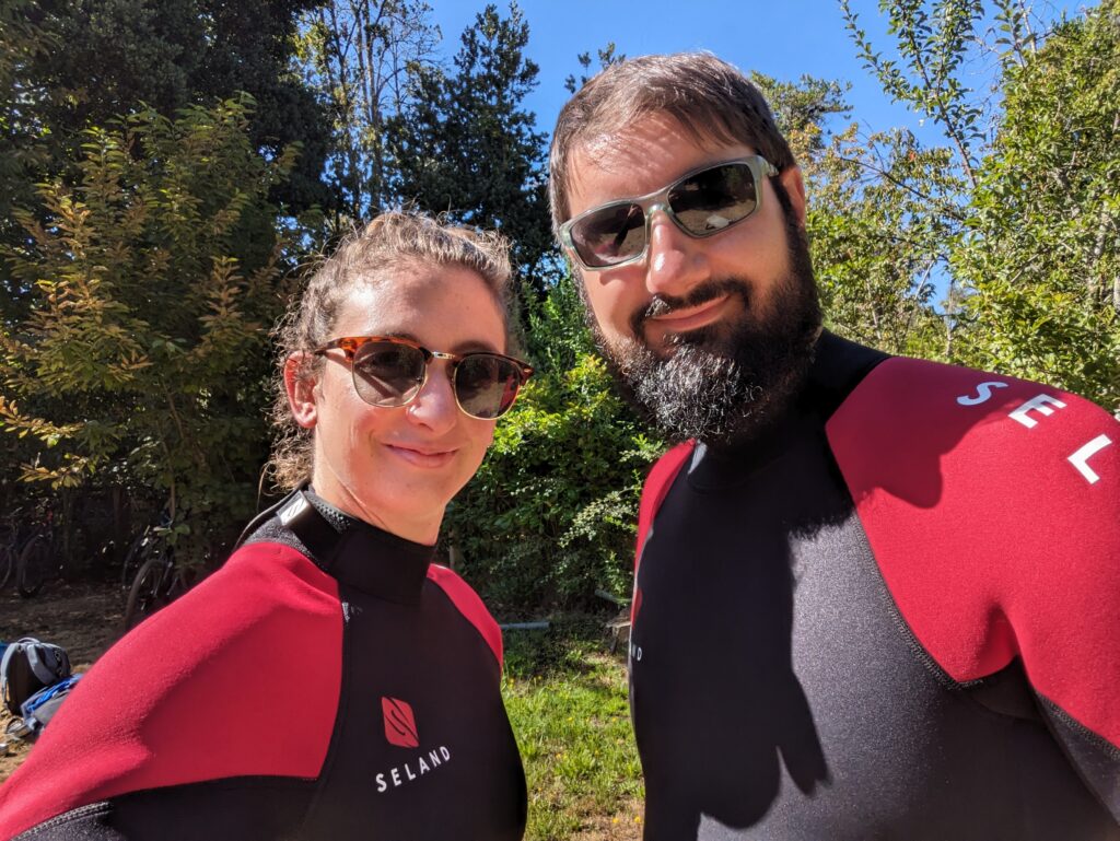 L’eau est assez bonne pour Adrien, mais pas pour Elena ! J’y reste environ 1h, enfin un peu de détente… Puis soudain, je vois quelqu’un tourner autour de la voiture. Attends, ce n’est pas un policier en train de me mettre une amende j’espère ! Ah non c’est bon une fille arrive (sûrement sa femme) et ils discutent. Puis elle monde côté conducteur et part… sans lui. Putain c’est vraiment un policier !