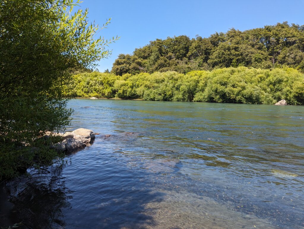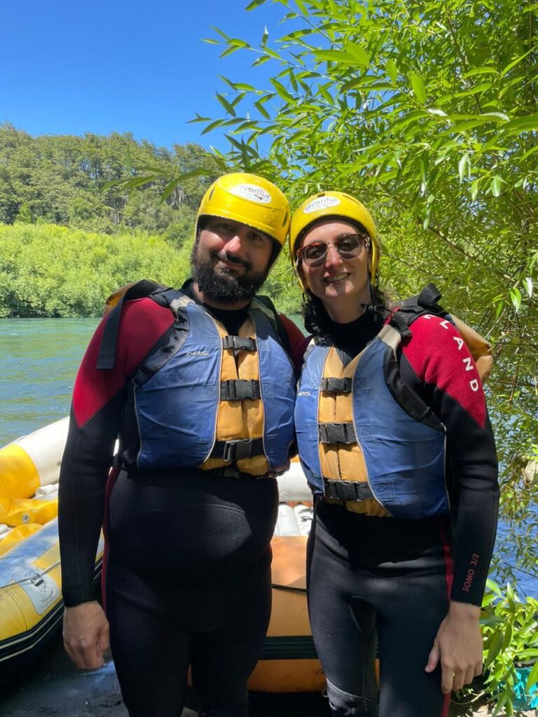 Bon, on va essayer d’avoir une journée plus intéressante ou plus reposante qu’hier ! Ça tombe bien car on la commence avec… du rafting ! Rendez-vous 10h en ville. On est groupé avec une petite famille chilienne très sympathique de 7 personnes. On part donc en minibus non pas pour la rivière, mais d’abord le lieu où l’on va recevoir nos combinaisons. Le chauffeur est très sympa, par contre il semblerait qu’il ne connaisse pas trop bien le chemin car on a fait un paquet de demi-tours et de passages dans des jardins qui ne sont pas les nôtres !