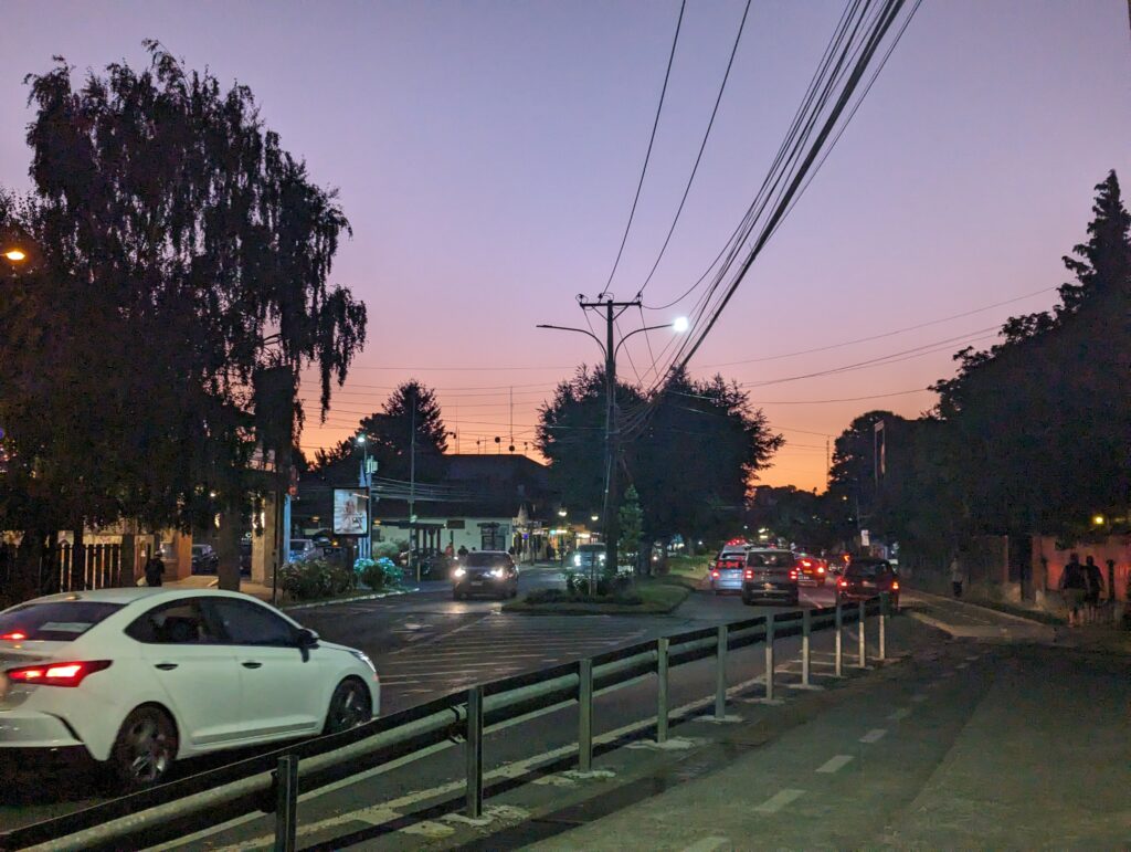 Finalement on arrive après 1h de navigation, un peu fatigué mais moi assez satisfait. Après un soda offert pour nous redonner de l’énergie, on nous ramène en ville. On décide de se faire plaisir en mangeant quelques empanadas. On en profite pour en essayer une aux pignons de pin, qu’on pense être une spécialité au vu de tous les arbres à pignons de pin de la région. On goutte, et on tombe sur… de la viande. Euuuuuh, on a pris Pino et Fromage elle est où la viande ici ? Eh ben après une petite recherche, Pino ne veut pas dire pignon de pin, ça c’est Piñón. Pino c’est une sorte de mélange de viande…. tant pis c’était quand même très bon. ^^