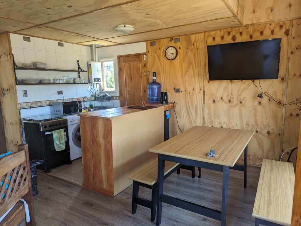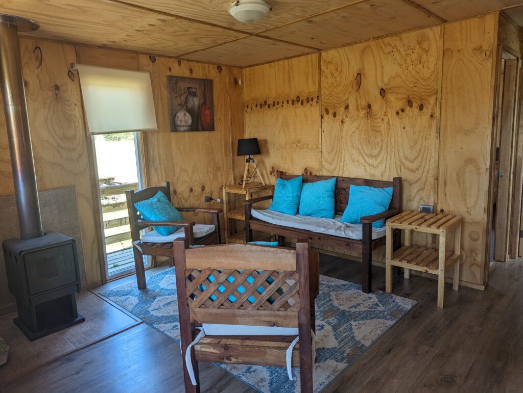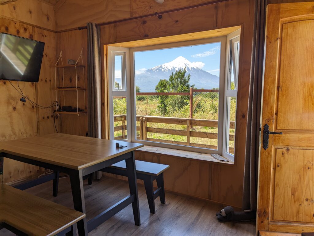 Ce matin, grasse mat ! On avait prévu de faire le tour du grand lac jusqu’à Puerto Varas, et de dormir ensuite à Puerto Montt pour prendre l’avion le lendemain. Mais déjà un peu la flemme, et puis notre hôte nous a autorisé à rester toute l’aprèm dans la cabanas !