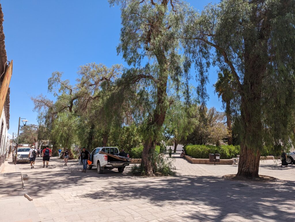 On arrive à la place centrale, qui est elle par contre assez jolie. Tout y est peint en blanc, et on y trouve pas mal d’arbres pour faire de l’ombre.