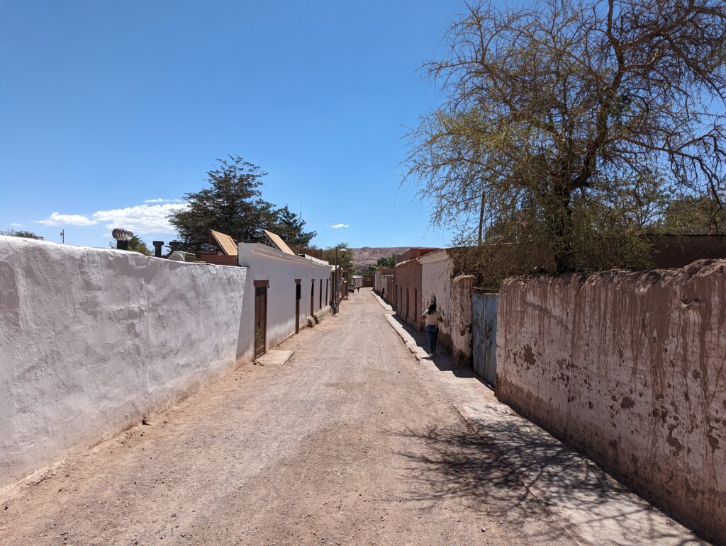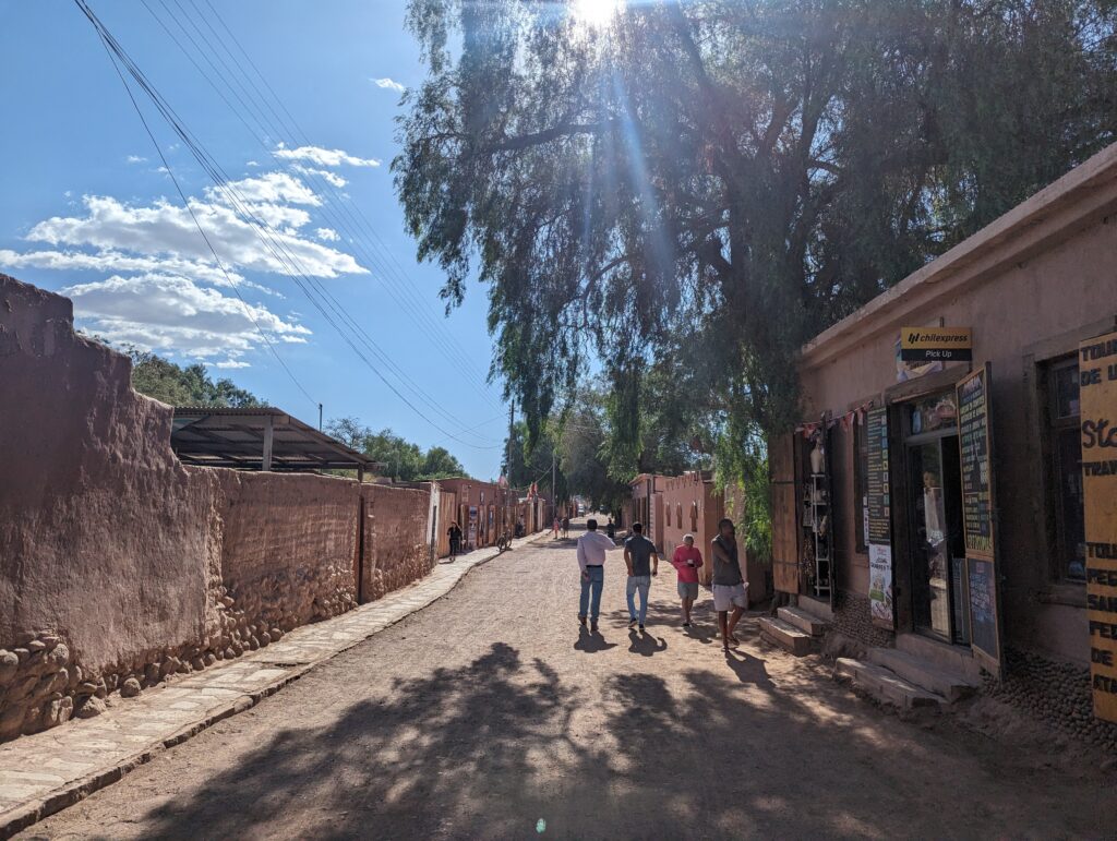 On va donc au centre. La ville est comme ce qu’on avait déjà vu : des murs de briques ou de terre qui entoure des rues non goudronnées. La marche n’y est pas très agréable. En effet déjà quand une voiture passe, elle soulève tout le sable et la poussière… Et de plus, bien évidemment, il fait chaud. Ça peut sembler évident, mais pas tant que ça car on est quand même à 2500m, et la température de l’air n’est pas si élevée. Par contre le soleil tape dur et fort… Car comme on est haut, et que l’air est très sec, il n’y a pas beaucoup d’atmosphère pour filtrer les UVs…