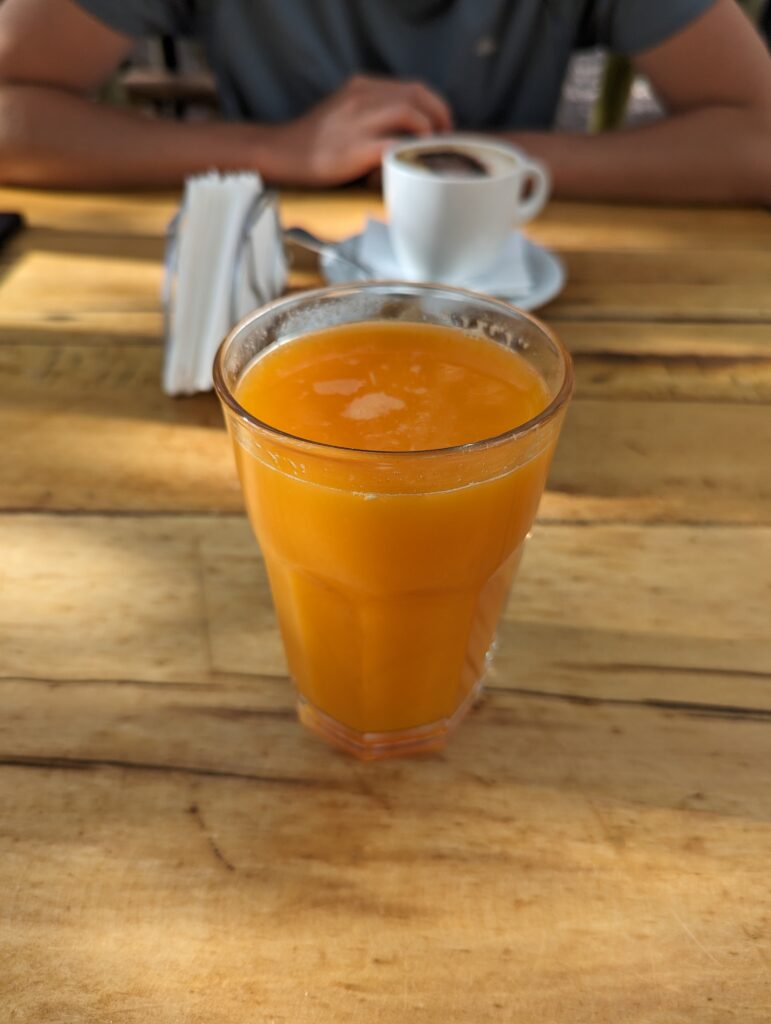 Malgré le ventilateur, on a eu un peu chaud… On prend la matinée tranquille pour se reposer, et aussi car il est conseillé de ne pas trop en faire le premier jour pour s’habituer à l’altitude. On planifie aussi ce que l’on va faire pendant nos 9 jours ici. Puis à 14h, on part faire les courses en ville.