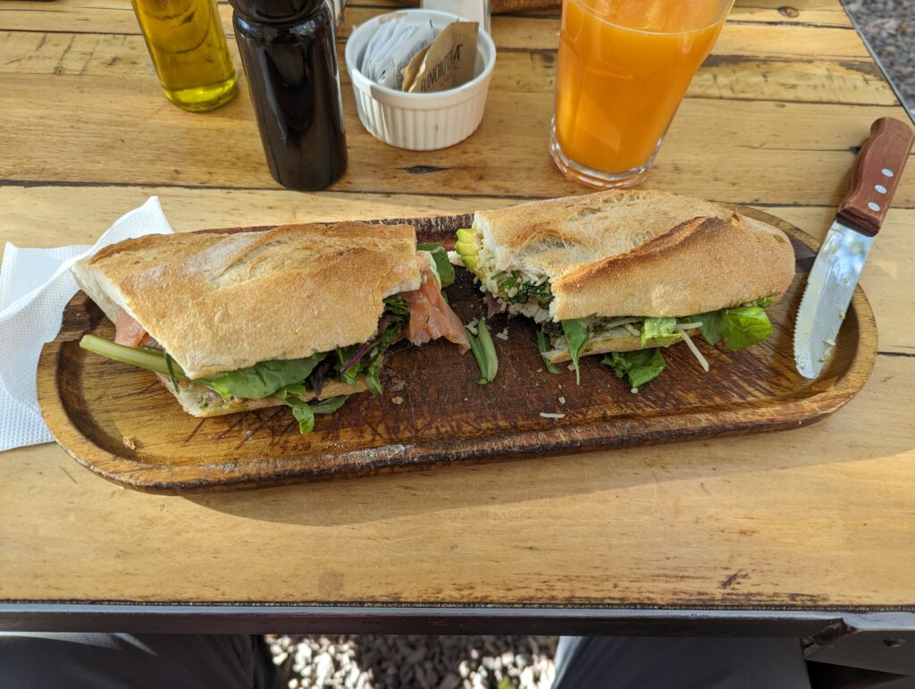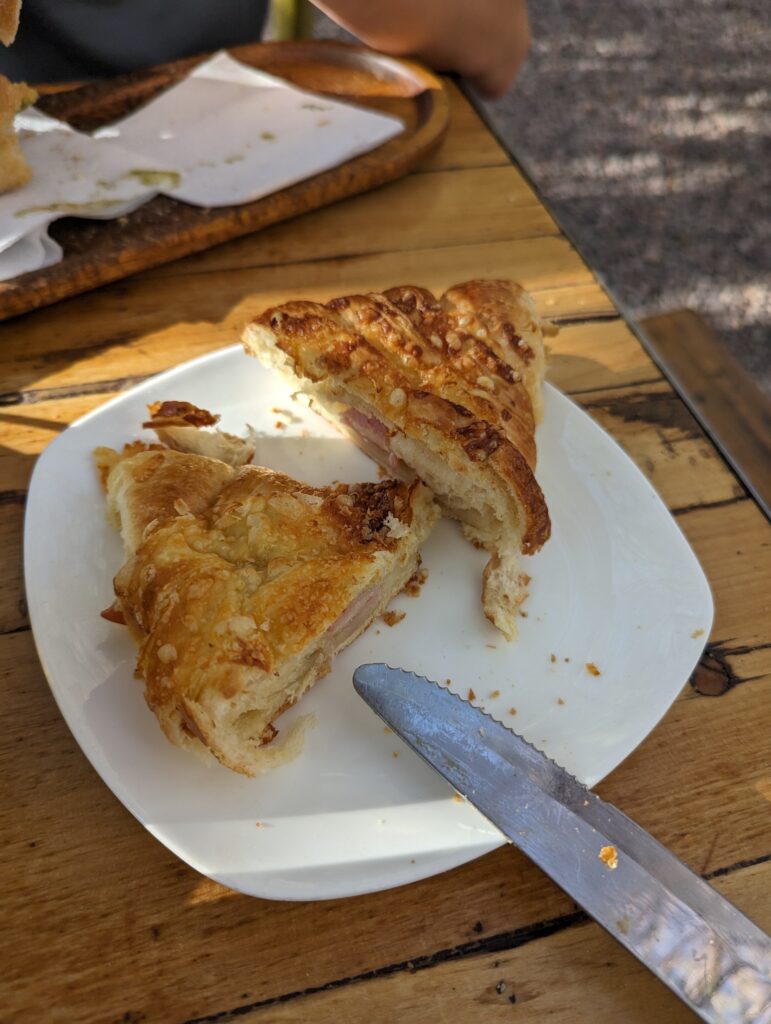 Le spectacle fini, on peut commander notre croissant jambon fromage, et nos deux sandwichs. Je ne sais pas si c’est le manque ou la faim qui parlent, mais la baguette était vraiment bonne, et le sandwich succulent !